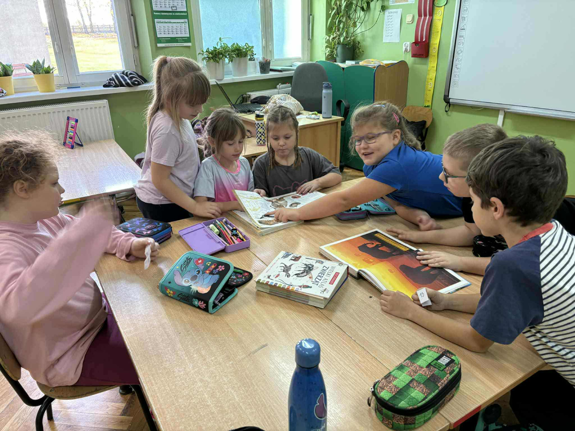 Uczniowie poznają tajemnice przyrody zawarte w książkach.