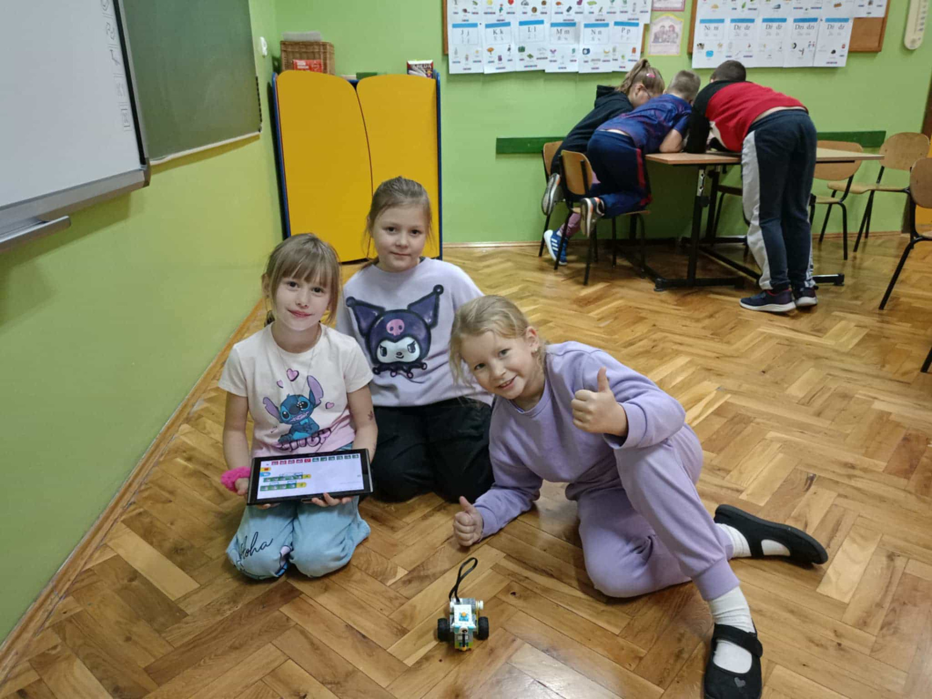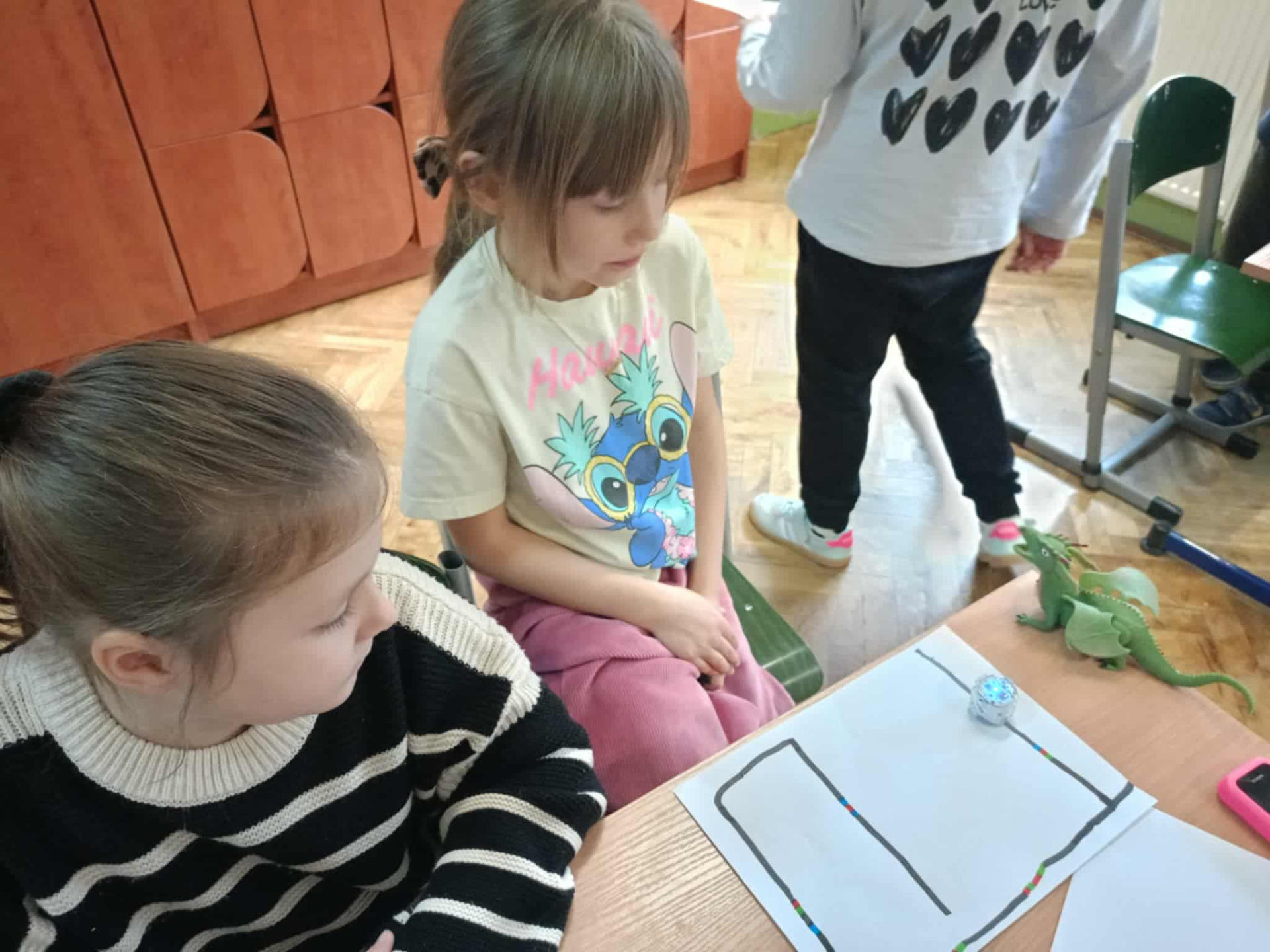 Uczennice poruszają zdalnie urządzeniem.