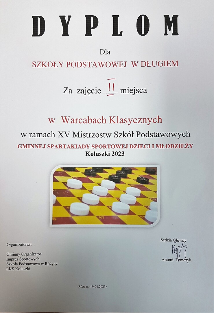 W dniu 19.04.2023 roku w Szkole Podstawowej w Różycy odbyły się II Mistrzostwa Przedszkoli i XV Szkół Podstawowych w Warcabach Błyskawicznych Gminnej Spartakiady Dzieci i Młodzieży.