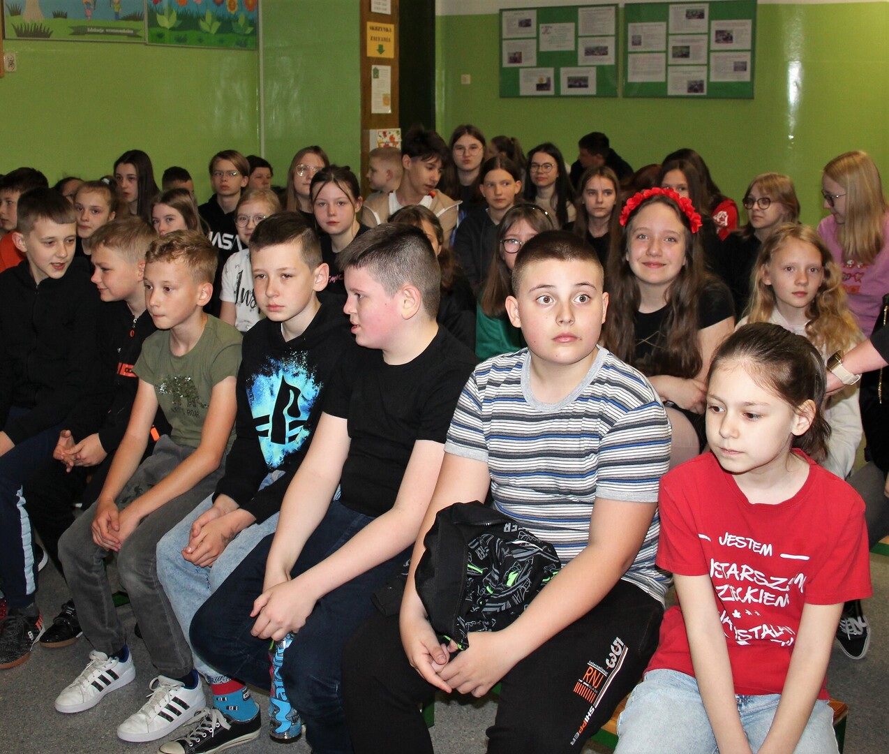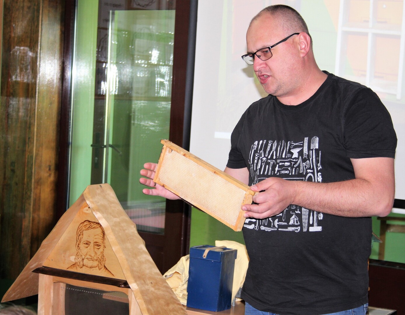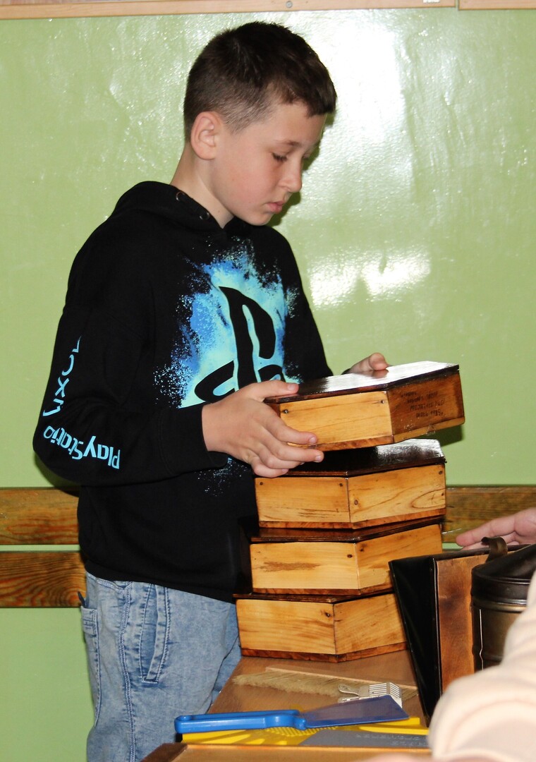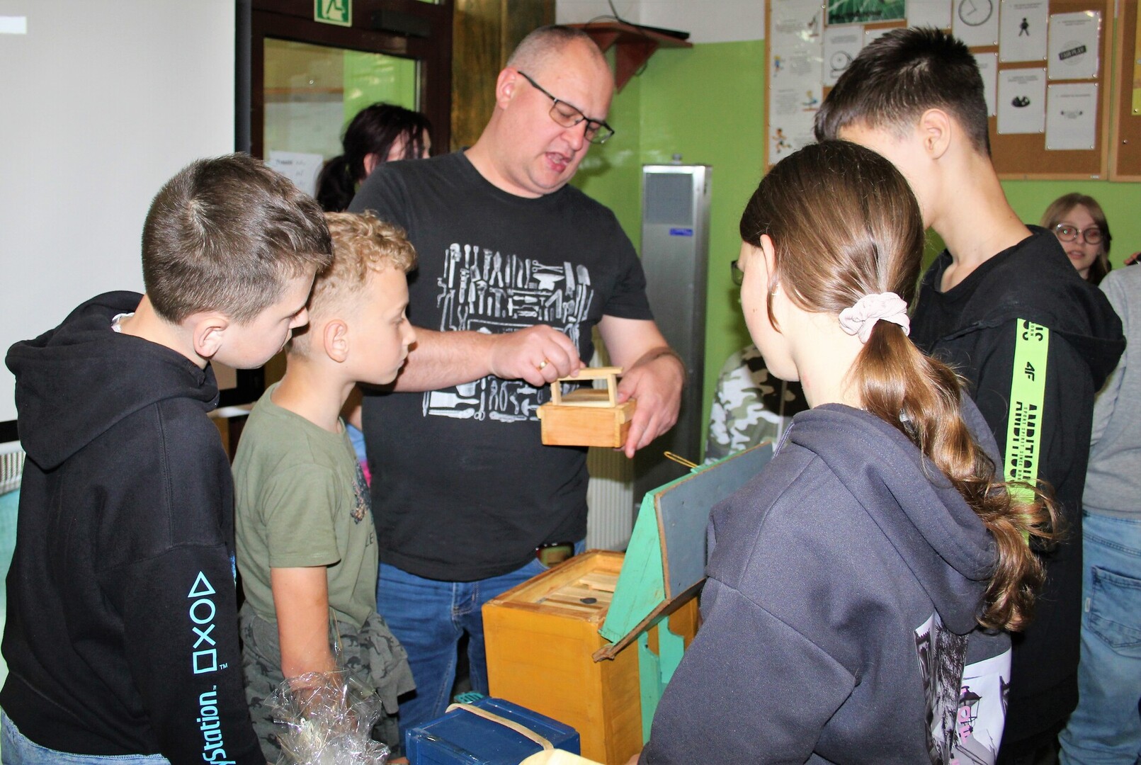 Poznali produkty jakie wytwarzają te niesamowite owady, takie jak: miód, mleczko pszczele, kit czy pierzga. Pan Wojciech przedstawił ich walory zdrowotne. Dodatkowo, zaproszony gość opowiedział o swojej pszczelarskiej pracy, która sprawia mu wielką radość i jest jego pasją. Ważnym aspektem spotkania była pogadanka dotycząca bezpieczeństwa człowieka w obecności owadów żądlących i zachowania po użądleniu. Pszczelarz poinstruował uczniów – jak postępować w sytuacji po ukąszeniu owadów. Zaprezentował liczne ciekawe eksponaty i fotografie związane z życiem pszczół i pracy w pasiece. Opowiedział wiele ciekawostek na temat życia pszczelej rodziny.