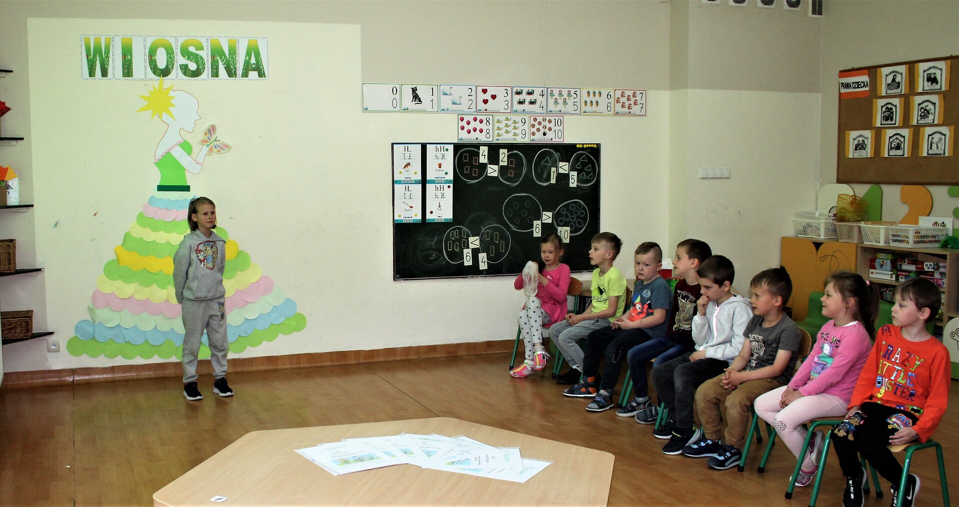 Pod takim hasłem odbył się dn.17.05.2023r wiosenny konkurs recytatorski w Oddziale Przedszkolnym naszej szkoły. Wiosna to ulubiona pora roku przedszkolaków, dlatego też postanowiły słowami opisać jej piękno i uroki. Wszystkie dzieci z radością nauczyły się na pamięć różnych wierszyków o tematyce wiosennej i chętnie indywidualnie występowały. Za udane występy dzieci otrzymały dyplomy.
