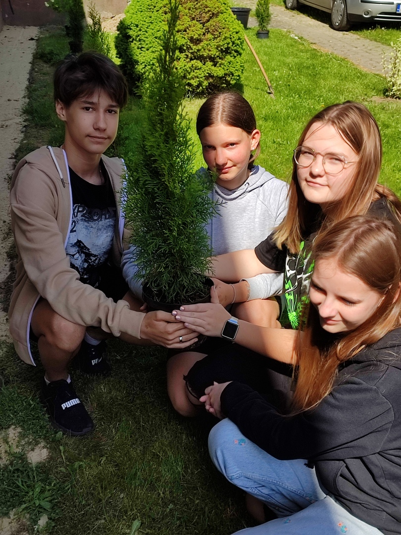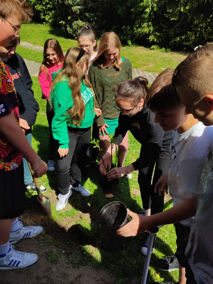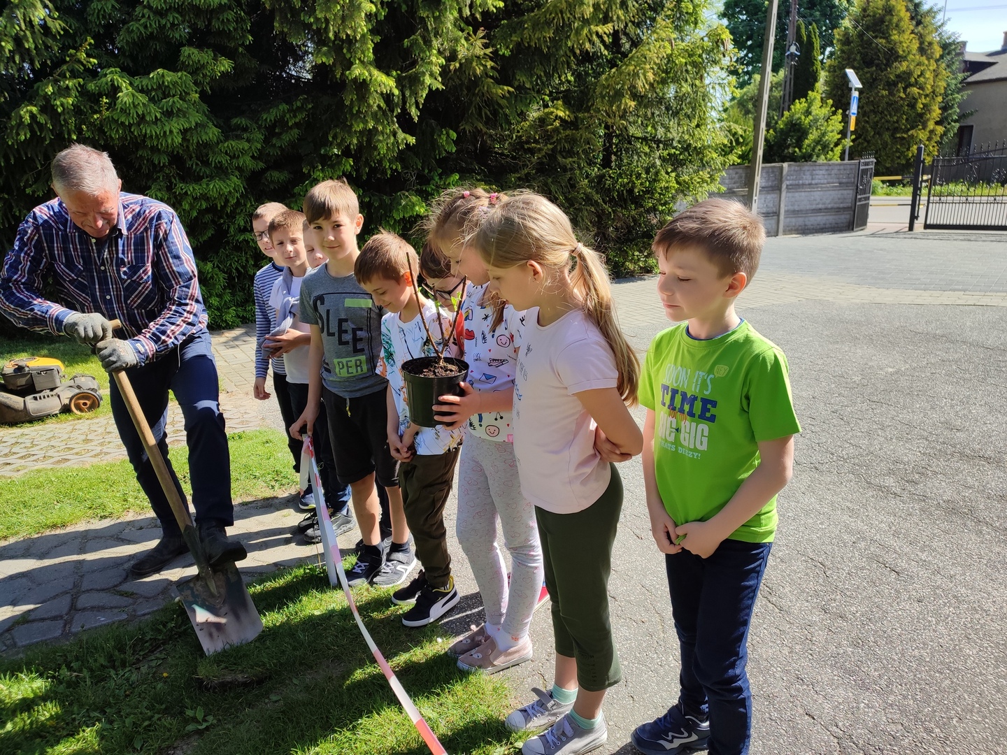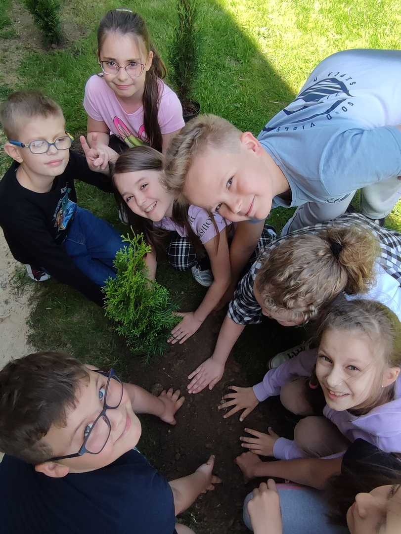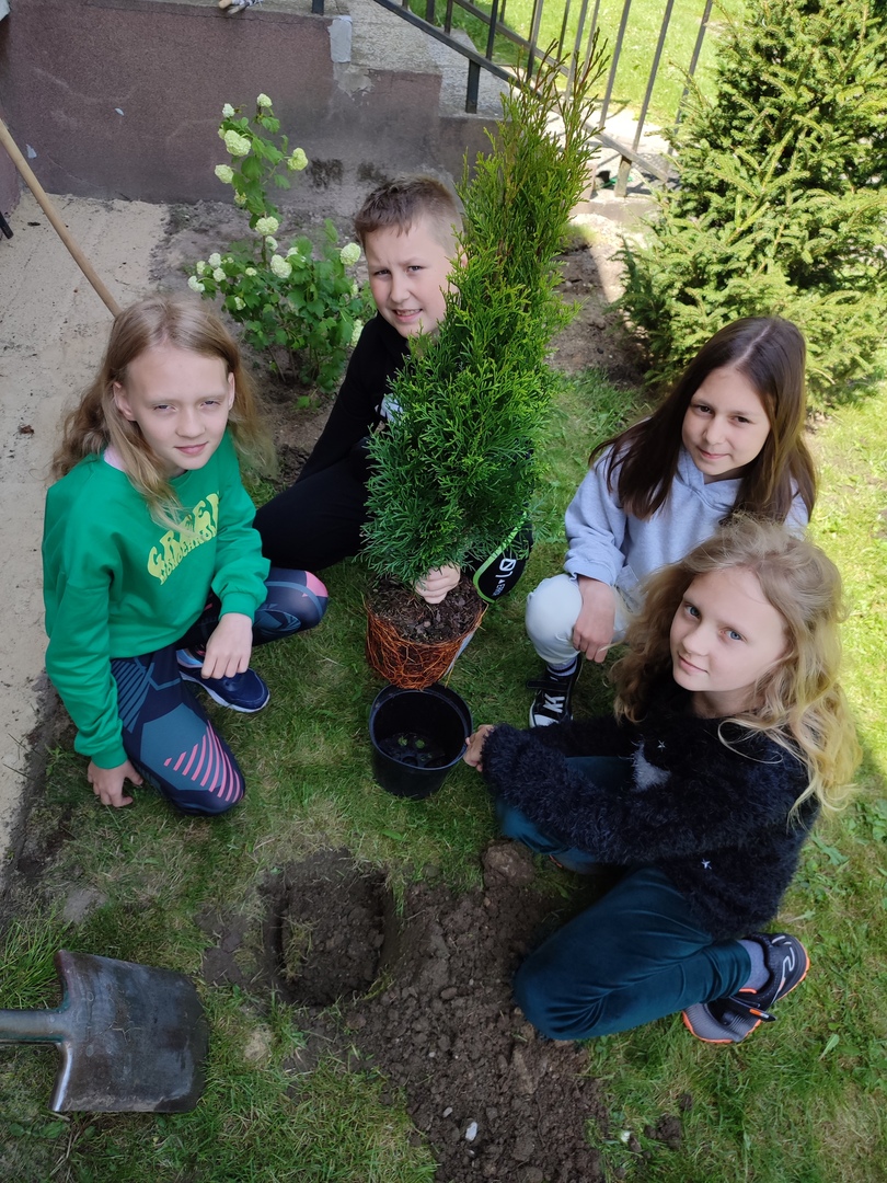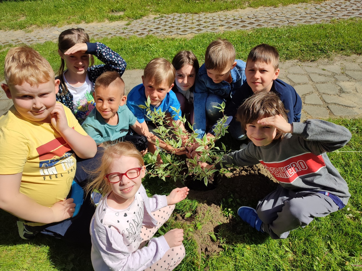 W związku z akcją " Zrób coś dla ZIemi" do naszej szkoł dotarły zakupione rośliny. Dzieci z dużym zapałem i radością wzieły się do działania. Każda klasa wybrała własną roślinę, którą bedzie się opiekować i wspólnymi siłami zasadziła ją na tereni szkoły we wcześniej przygotowanym do tego miejscu.