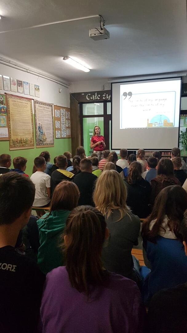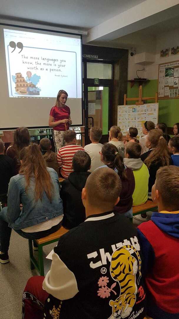 Europejski Dzień Języków Obcych w naszej szkole. Uczniowie wzięli udział w quizie wiedzy o językach europejskich. Zapoznali się też z cytatami po angielsku, które zachęcały do nauki języków. Dzieci zaprezentowały też zrobione przez siebie plakaty. Wcześniej mieli okazję zapoznać się z ciekawostkami o tej tematyce. Mogli również posłuchać brzmienia różnych języków za pomocą kodów QR.