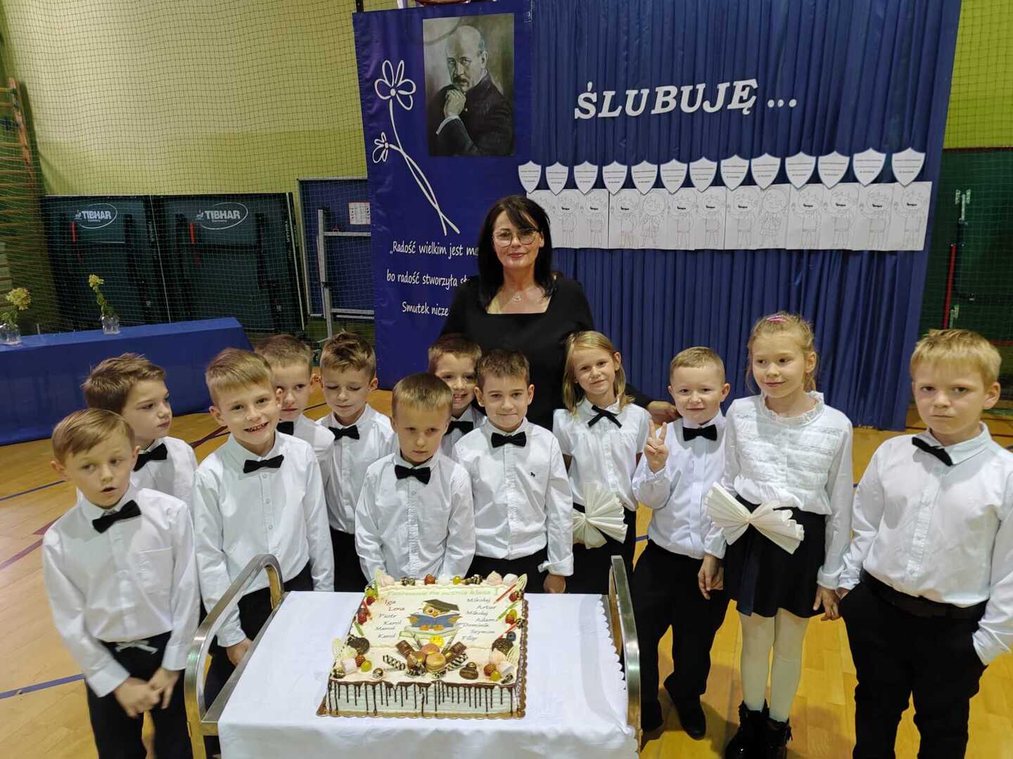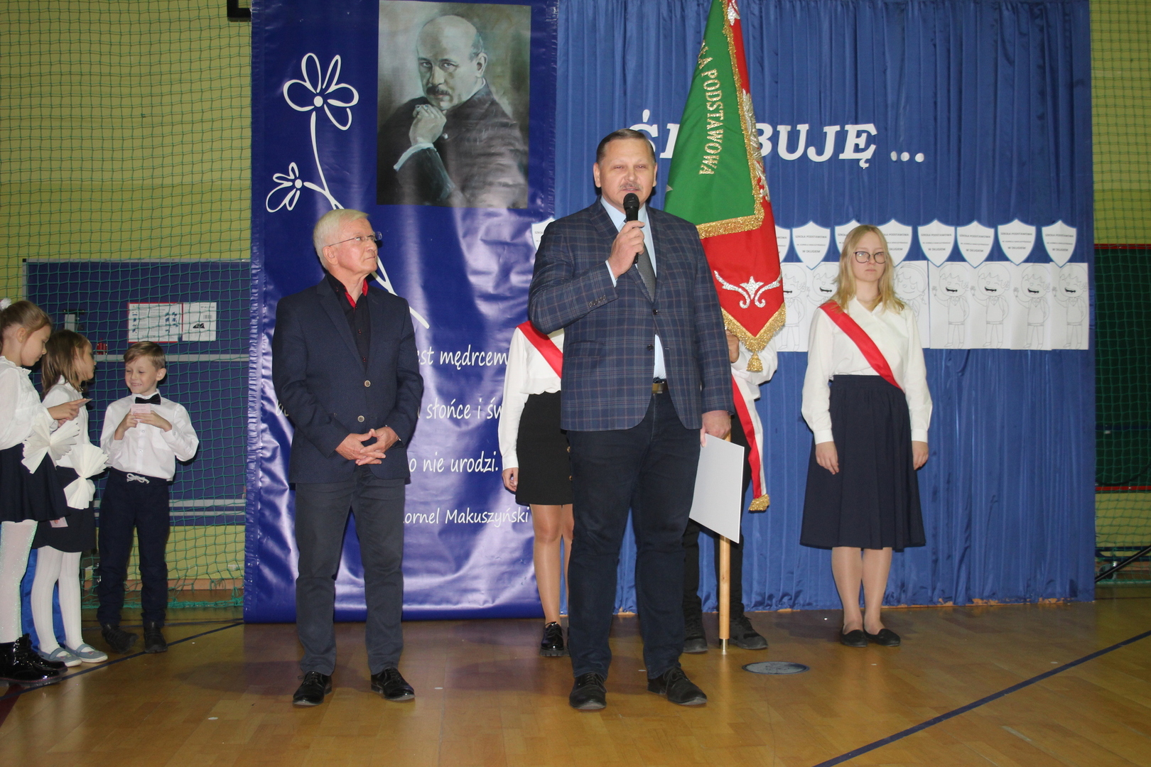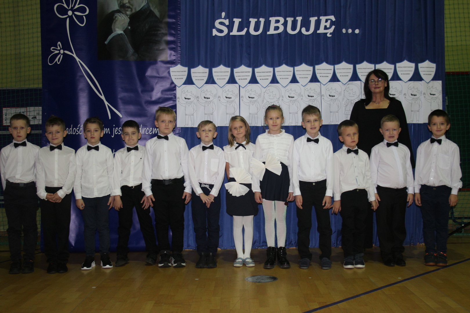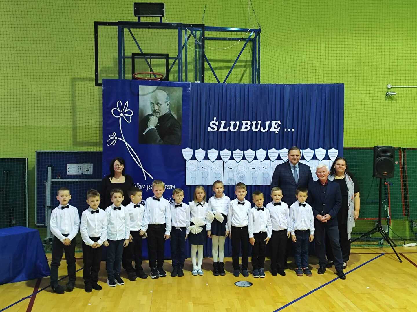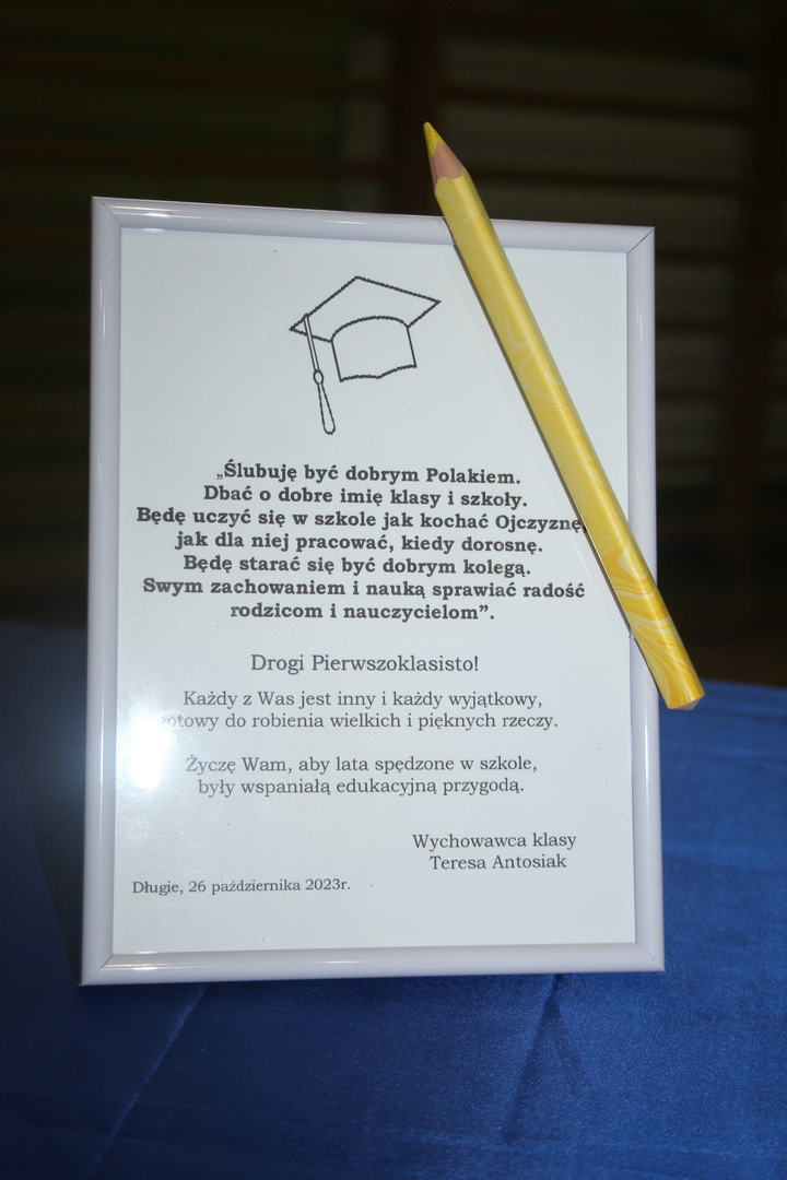 Jedną z piękniejszych uroczystości w naszej szkole jest przyjęcie pierwszoklasistów w poczet uczniów Szkoły Podstawowej im. Kornela Makuszyńskiego w Długiem. Dnia 26 października mieliśmy zaszczyt uczestniczyć w tym niezwykłym wydarzeniu. Pierwszoklasiści w obecności zaproszonych gości: pana Burmistrza Koluszek Waldemara Chałata oraz przyjaciela naszej szkoły pana Antoniego Tomczyka - ślubowali być dobrymi Polakami, dbać o dobre imię swojej klasy i szkoły, dążyć do doskonałości kierując się wzajemny szacunkiem.