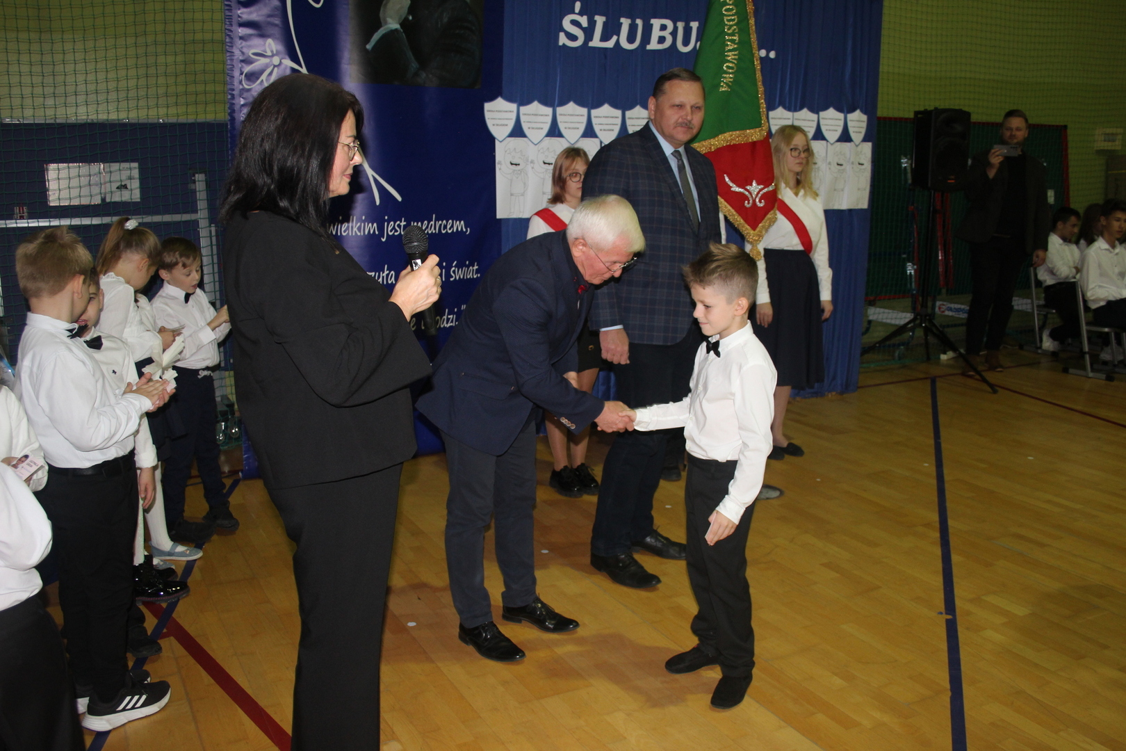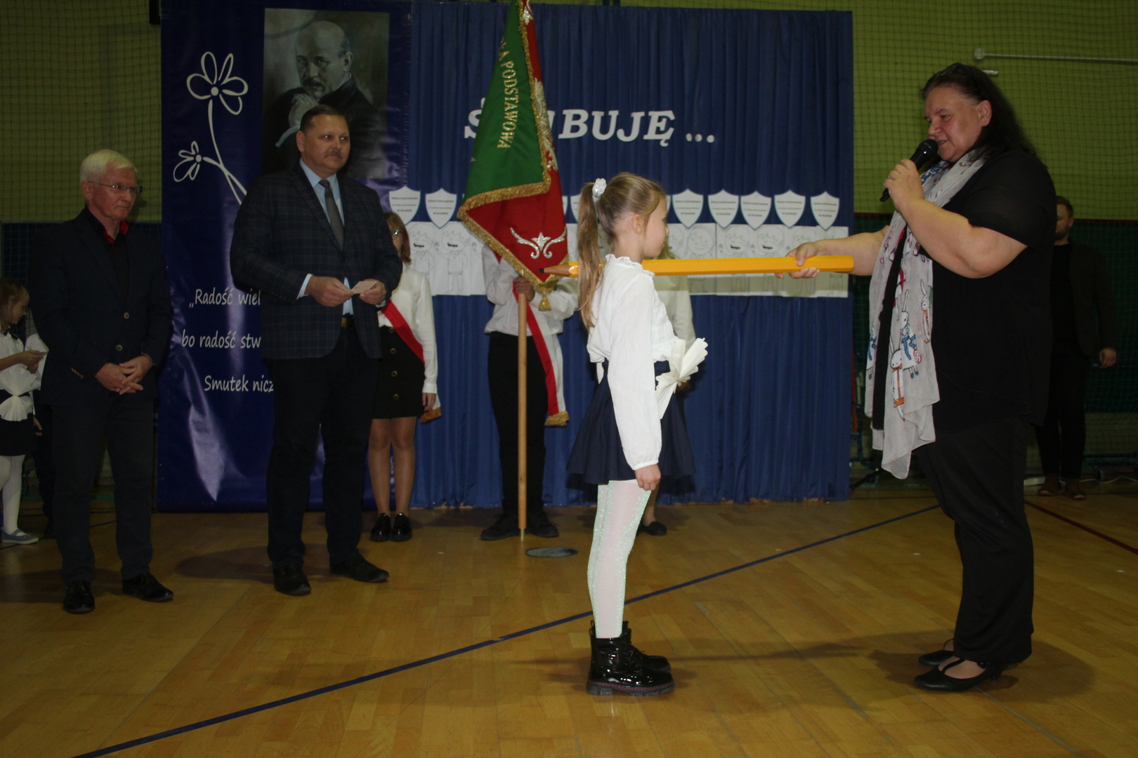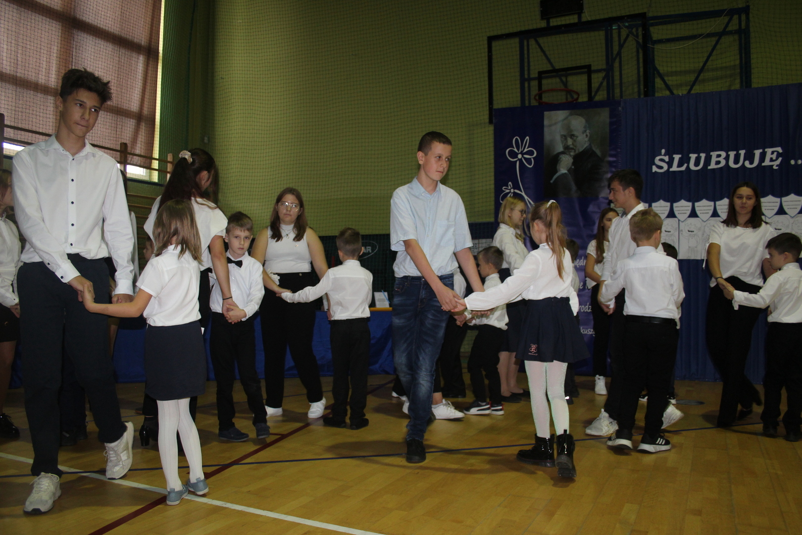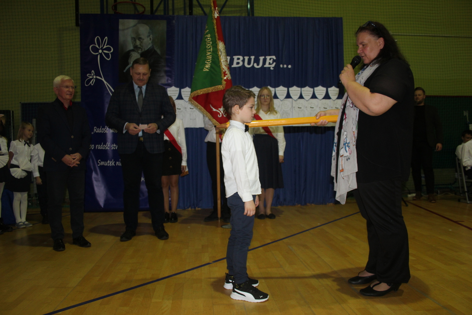 Jedną z piękniejszych uroczystości w naszej szkole jest przyjęcie pierwszoklasistów w poczet uczniów Szkoły Podstawowej im. Kornela Makuszyńskiego w Długiem. Dnia 26 października mieliśmy zaszczyt uczestniczyć w tym niezwykłym wydarzeniu. Pierwszoklasiści w obecności zaproszonych gości: pana Burmistrza Koluszek Waldemara Chałata oraz przyjaciela naszej szkoły pana Antoniego Tomczyka - ślubowali być dobrymi Polakami, dbać o dobre imię swojej klasy i szkoły, dążyć do doskonałości kierując się wzajemny szacunkiem.