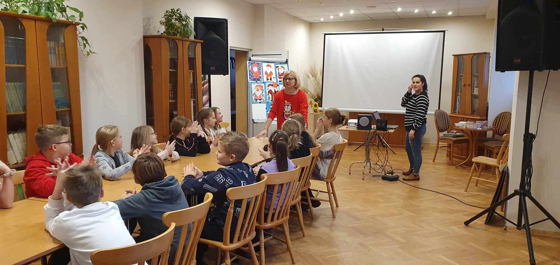 Uczniowie klasy 1, 2, 3 i 4 z wizytą w Bibliotece Miejskiej.