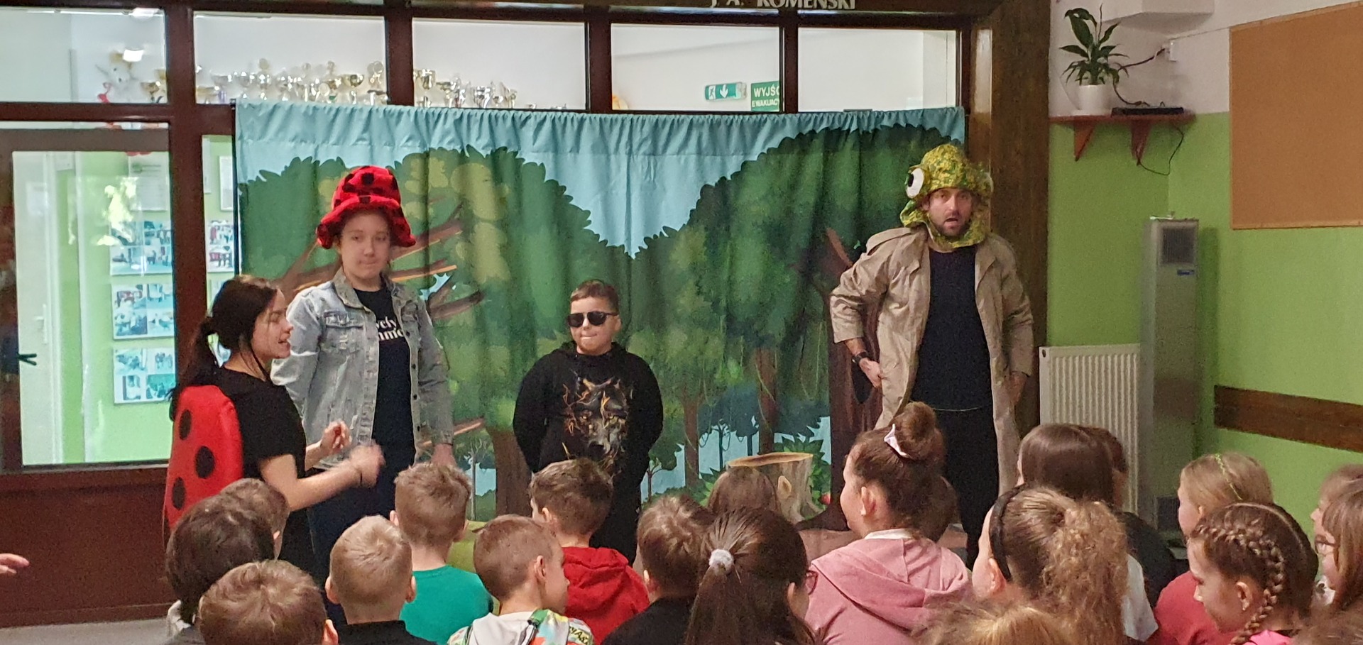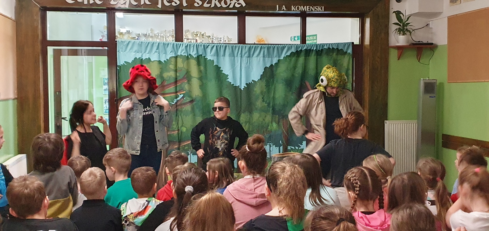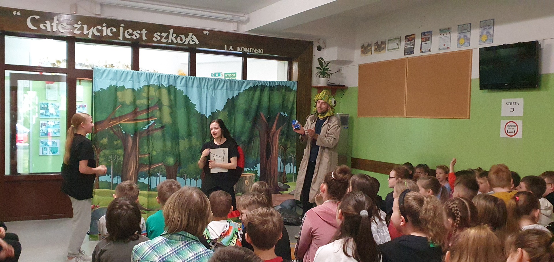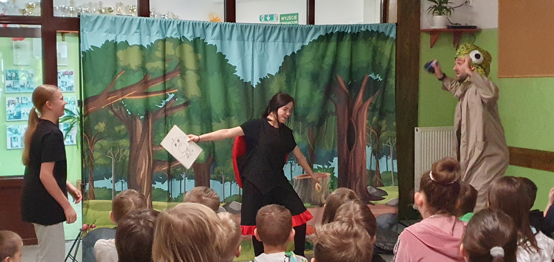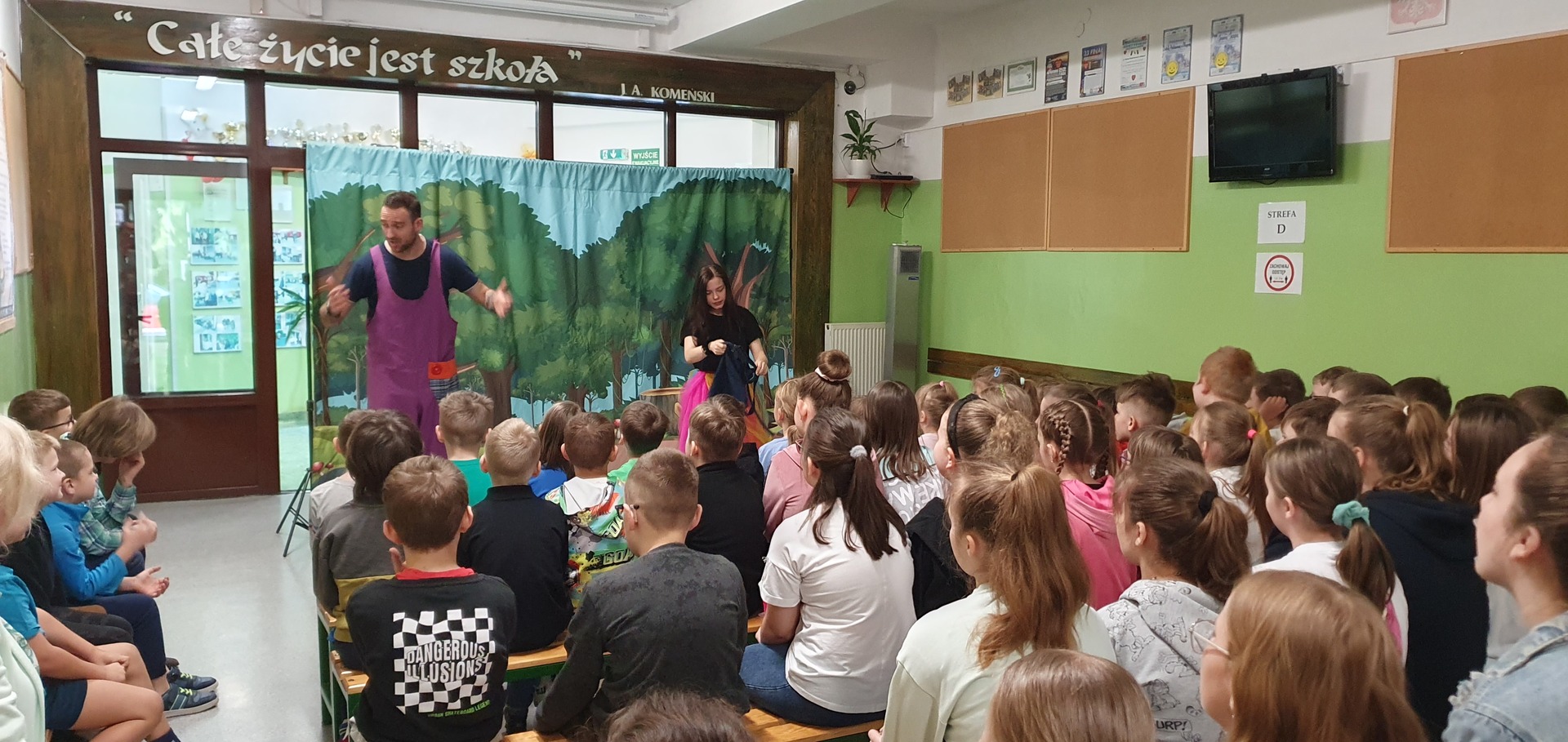 Dnia 8 kwietnia w naszej szkole gościliśmy grupę teatralną z Torunia. W przedstawieniu profilaktycznym wzięli udział uczniowie klas 0-6. W czasie mini spektaklu zostały poruszone zagadnienia dotyczące ekologii oraz stylu życia w duchu zero waste.