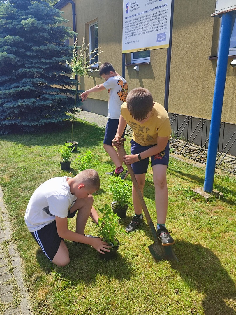 Dzisiaj nastąpił finał akcji. Wspólnie posadziliśmy kwitnące wierzby i hortensje w naszym szkolnym zielonym zakątku. Nowe rośliny będą żywą pamiątką naszych ekologicznych działań.