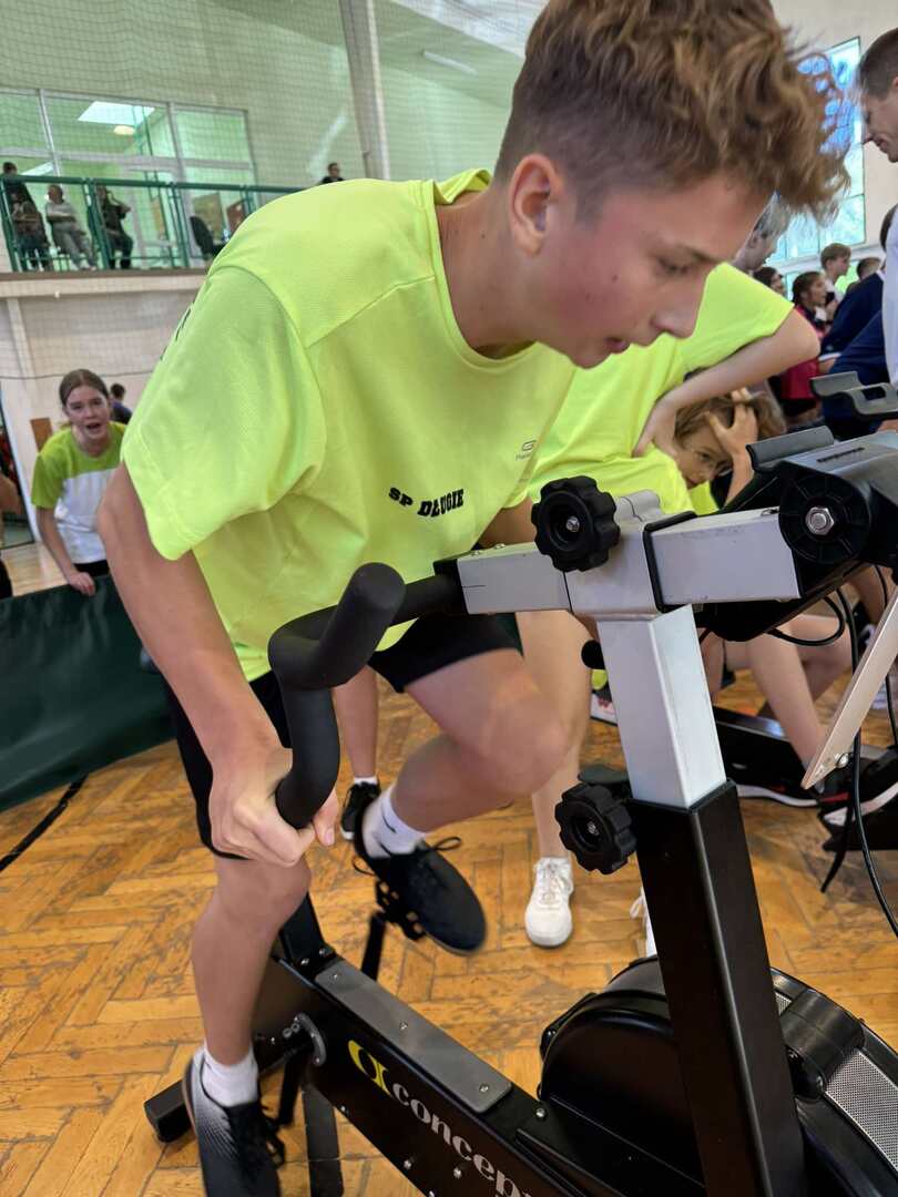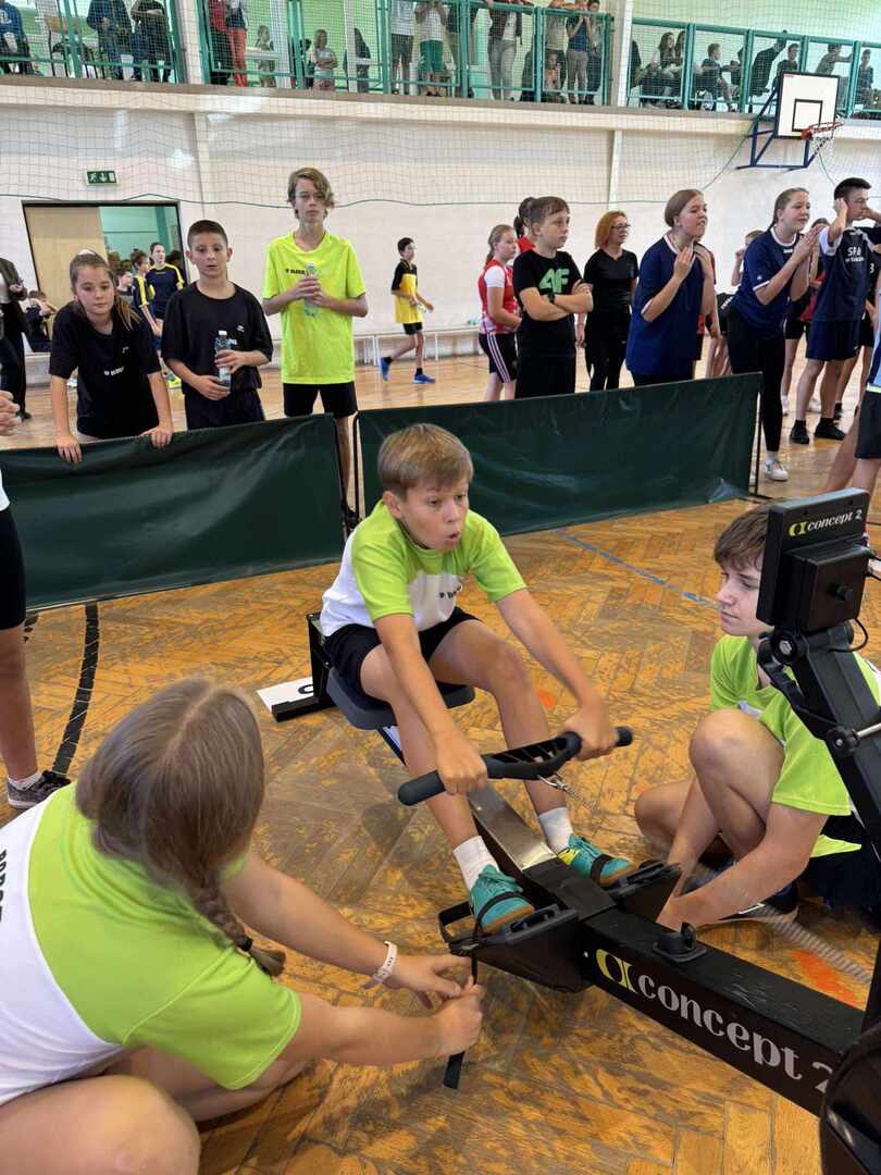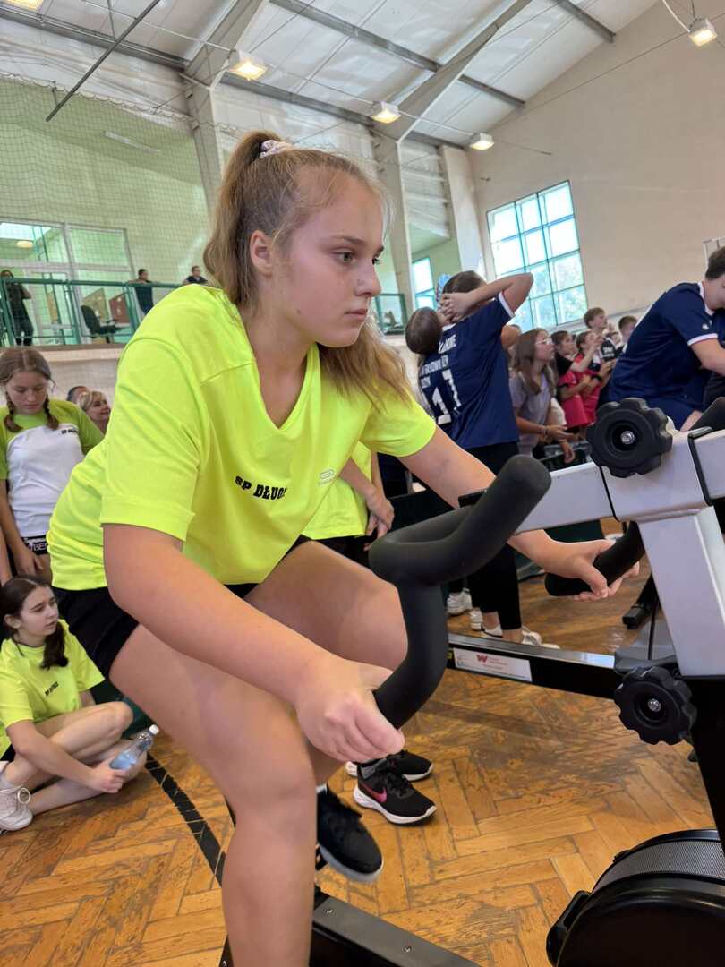 27 września reprezentacja naszej szkoły udała do SP w Gałkowie Dużym na zawody „Sprint Drużyna”, które zorganizowane zostały przez Stowarzyszenie Olimpijskie „Wygrywamy” prowadzone przez medalistkę olimpijską Agnieszkę Kobus-Zawojską oraz medalistę mistrzostw Europy Macieja Zawojskiego. Rywalizacja odbywała się na ergometrach wioślarskich i rowerach stacjonarnych w formie sztafety. W skład drużyny wchodzili dwaj chłopcy i dwie dziewczynki. Drużyna musiała pokonać najpierw dystans 1000 m zmieniając się co 250 m wiosłując i 1000 m jadąc na rowerze również dokonując zmian co 250 m. Wyścigi rozgrywane były w kategorii dla klas 5,6,7,8. Zawodnicy podczas wiosłowania i jazdy świetnie ze sobą współpracowali, a kibice z całych sił dopingowali. Gratulujemy udziału we wspaniałej koleżeńskiej rywalizacji i bardzo dobrych wyników.