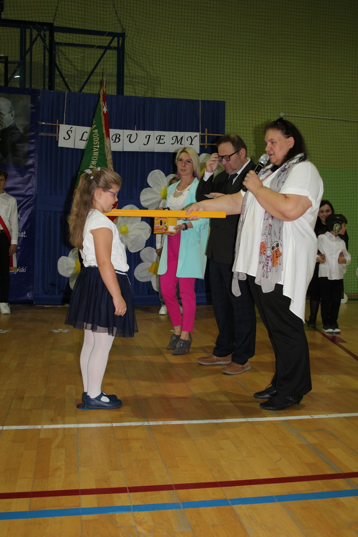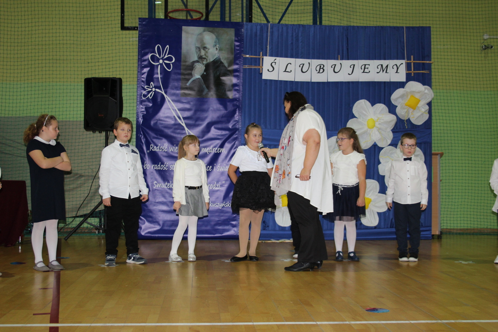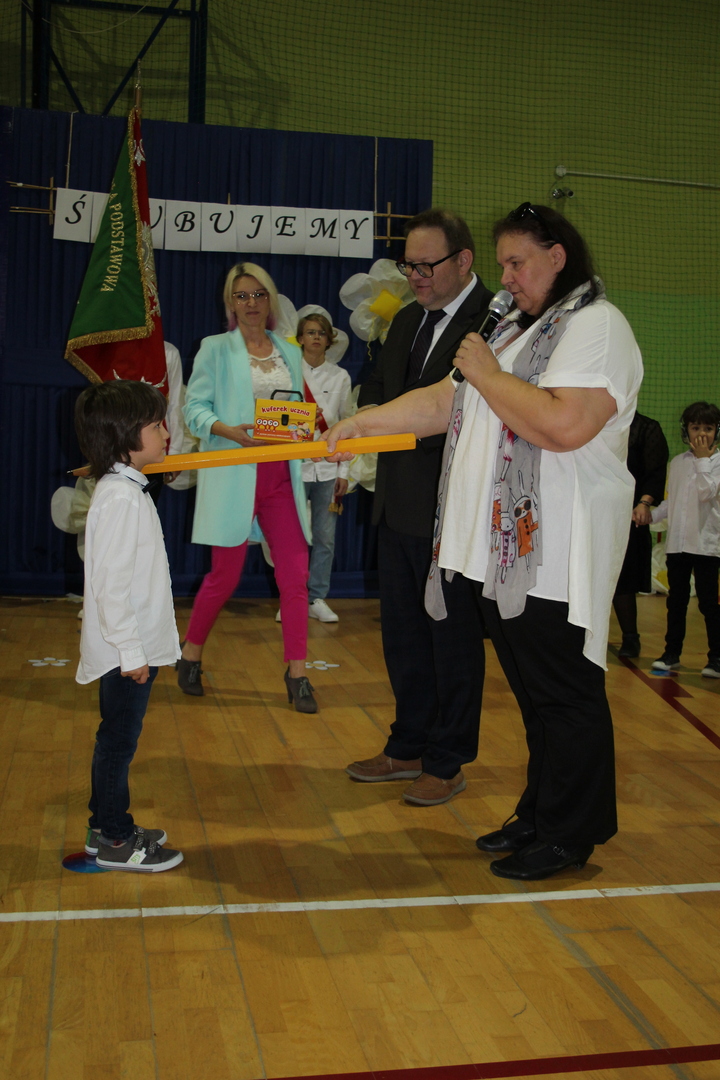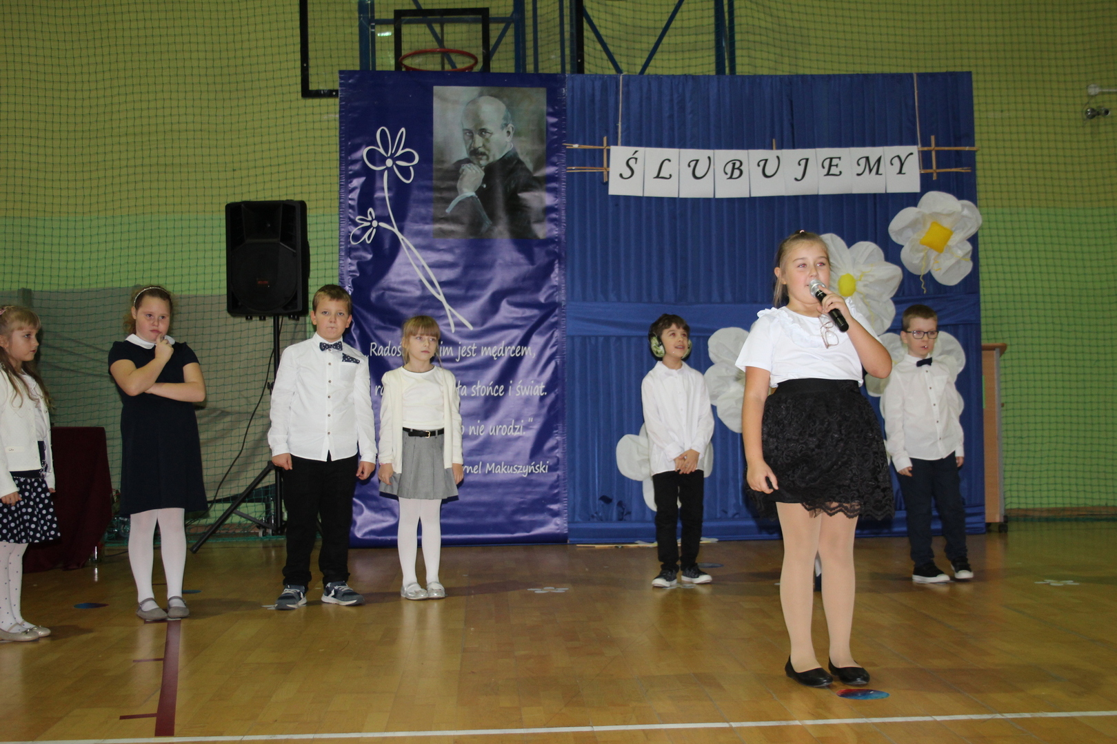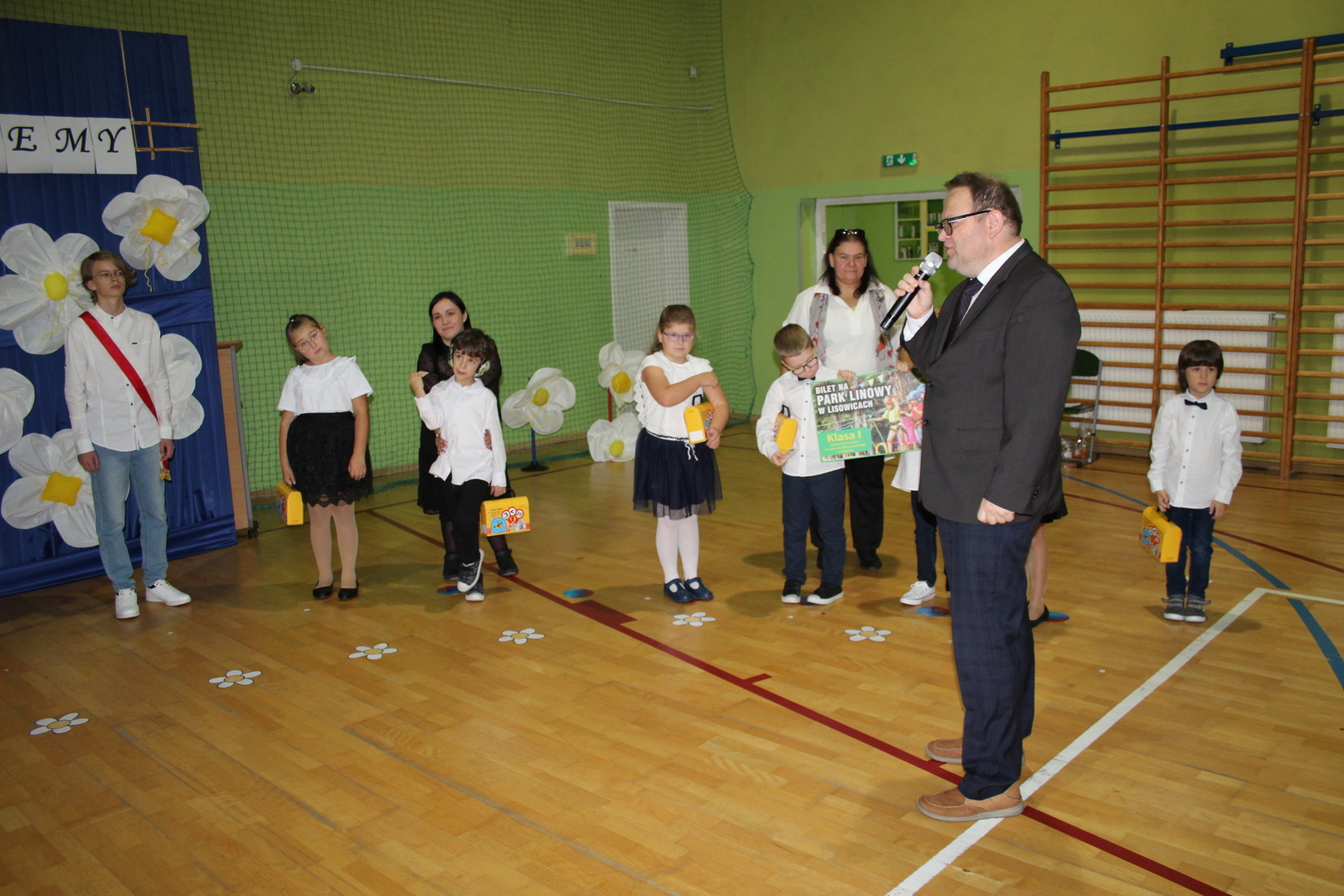 Dnia 9 październik w naszej szkole odbyła się uroczystość pasowania na ucznia połączona z obchodami Dnia Edukacji Narodowej. W trakcie uroczystości dzieci pokazały, że potrafią pięknie śpiewać i recytować. W obecności całej społeczności szkolnej, Dyrektor Szkoły Joanna Jeżyna wraz z Zastępcą Burmistrza Koluszek panem Tomaszem Krawczykiem przyjęli pierwszoklasistów do grona uczniów. Dzieci głośno przyrzekały być dobrymi i pilnymi uczniami oraz rzetelnie wypełniać swoje obowiązki.