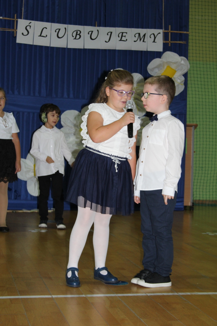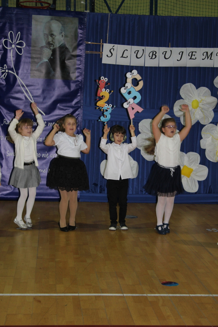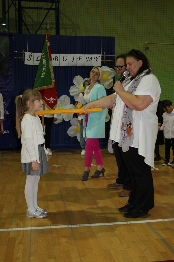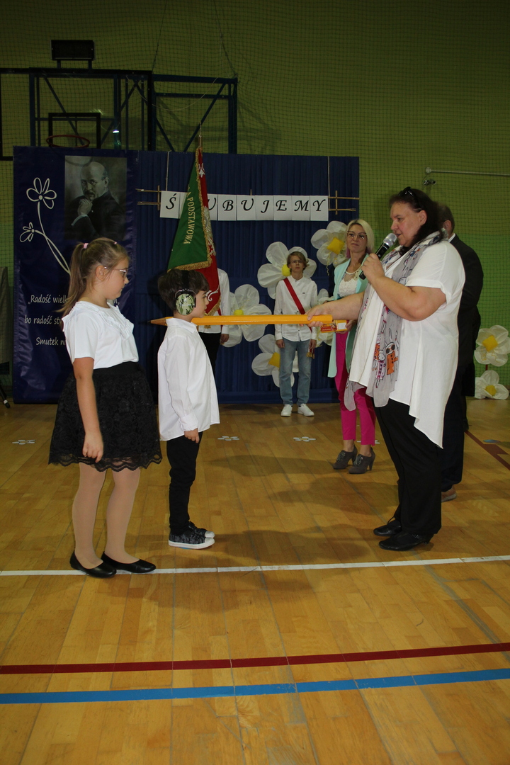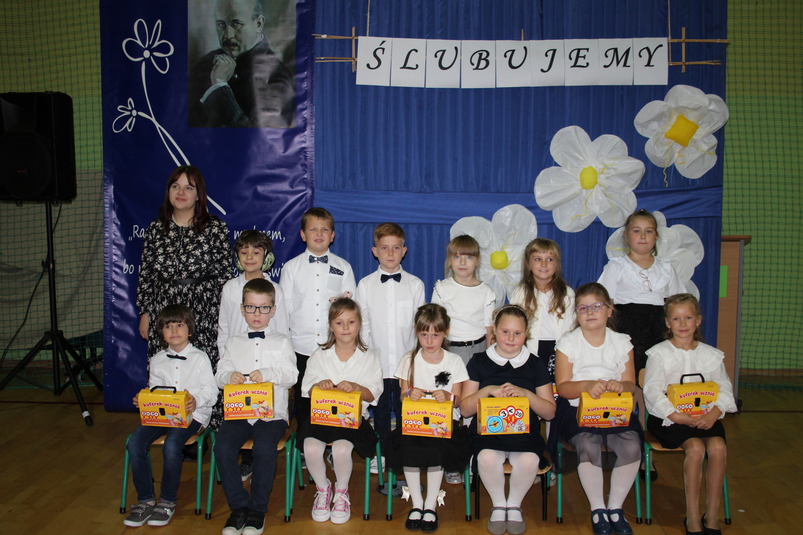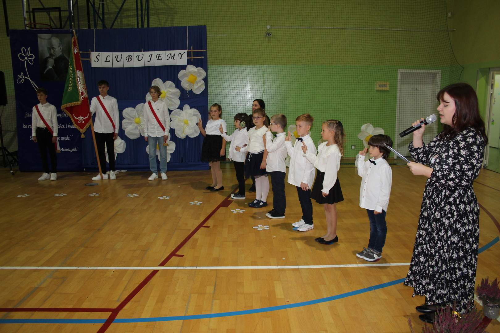 Dnia 9 październik w naszej szkole odbyła się uroczystość pasowania na ucznia połączona z obchodami Dnia Edukacji Narodowej. W trakcie uroczystości dzieci pokazały, że potrafią pięknie śpiewać i recytować. W obecności całej społeczności szkolnej, Dyrektor Szkoły Joanna Jeżyna wraz z Zastępcą Burmistrza Koluszek panem Tomaszem Krawczykiem przyjęli pierwszoklasistów do grona uczniów. Dzieci głośno przyrzekały być dobrymi i pilnymi uczniami oraz rzetelnie wypełniać swoje obowiązki.