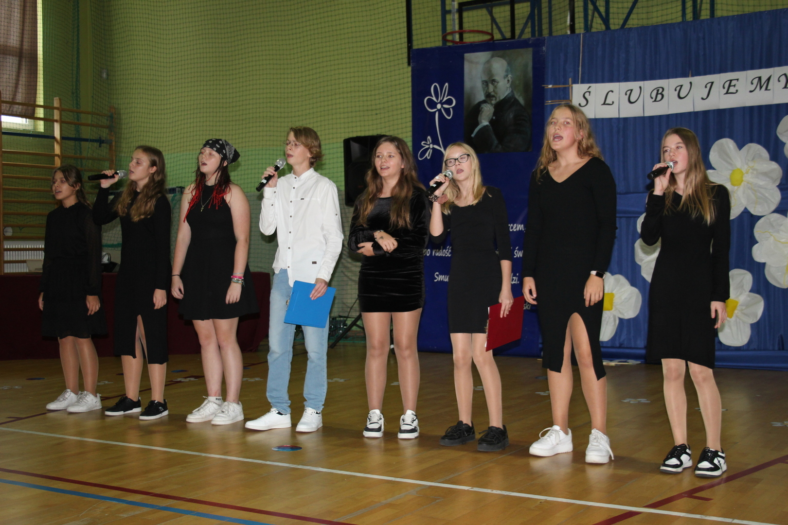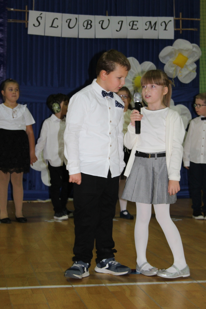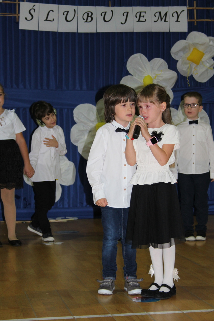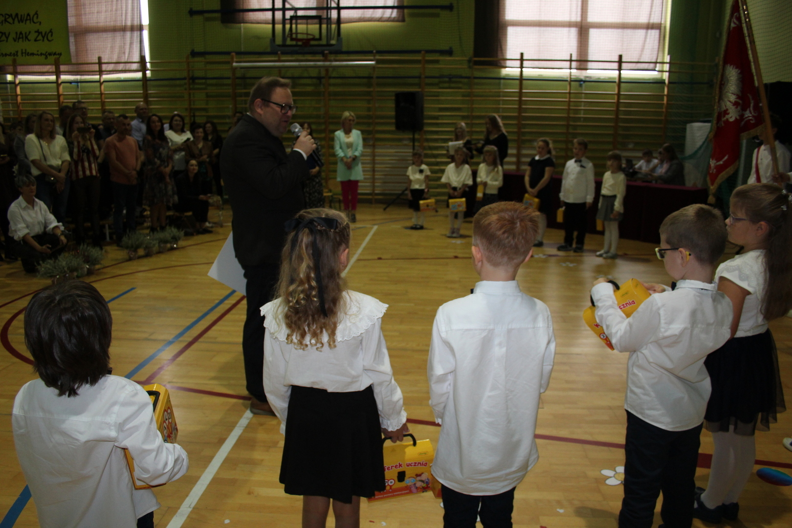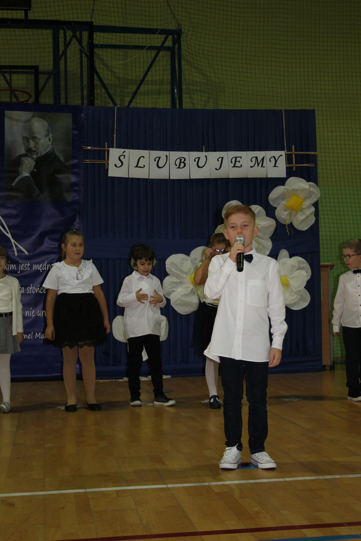 Dnia 9 październik w naszej szkole odbyła się uroczystość pasowania na ucznia połączona z obchodami Dnia Edukacji Narodowej. W trakcie uroczystości dzieci pokazały, że potrafią pięknie śpiewać i recytować. W obecności całej społeczności szkolnej, Dyrektor Szkoły Joanna Jeżyna wraz z Zastępcą Burmistrza Koluszek panem Tomaszem Krawczykiem przyjęli pierwszoklasistów do grona uczniów. Dzieci głośno przyrzekały być dobrymi i pilnymi uczniami oraz rzetelnie wypełniać swoje obowiązki.