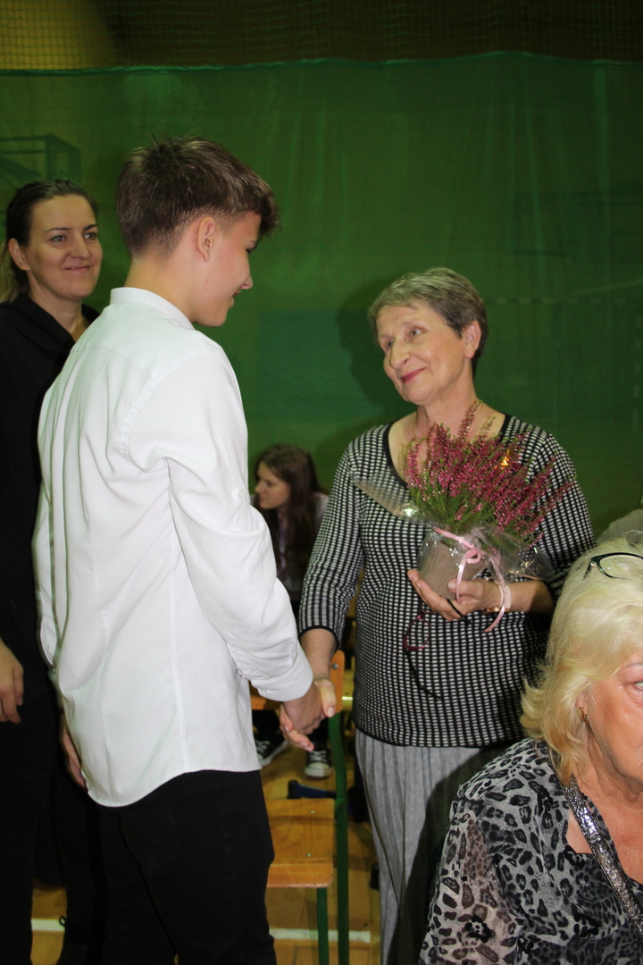Po części artystycznej Pani Dyrektor Joanna Jeżyna wręczyła nagrody dla Nauczycieli i pracowników szkoły oraz życzyła im dalszych sukcesów.