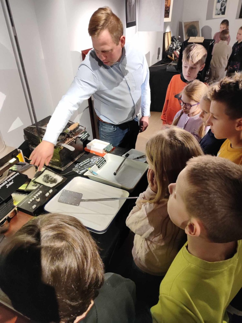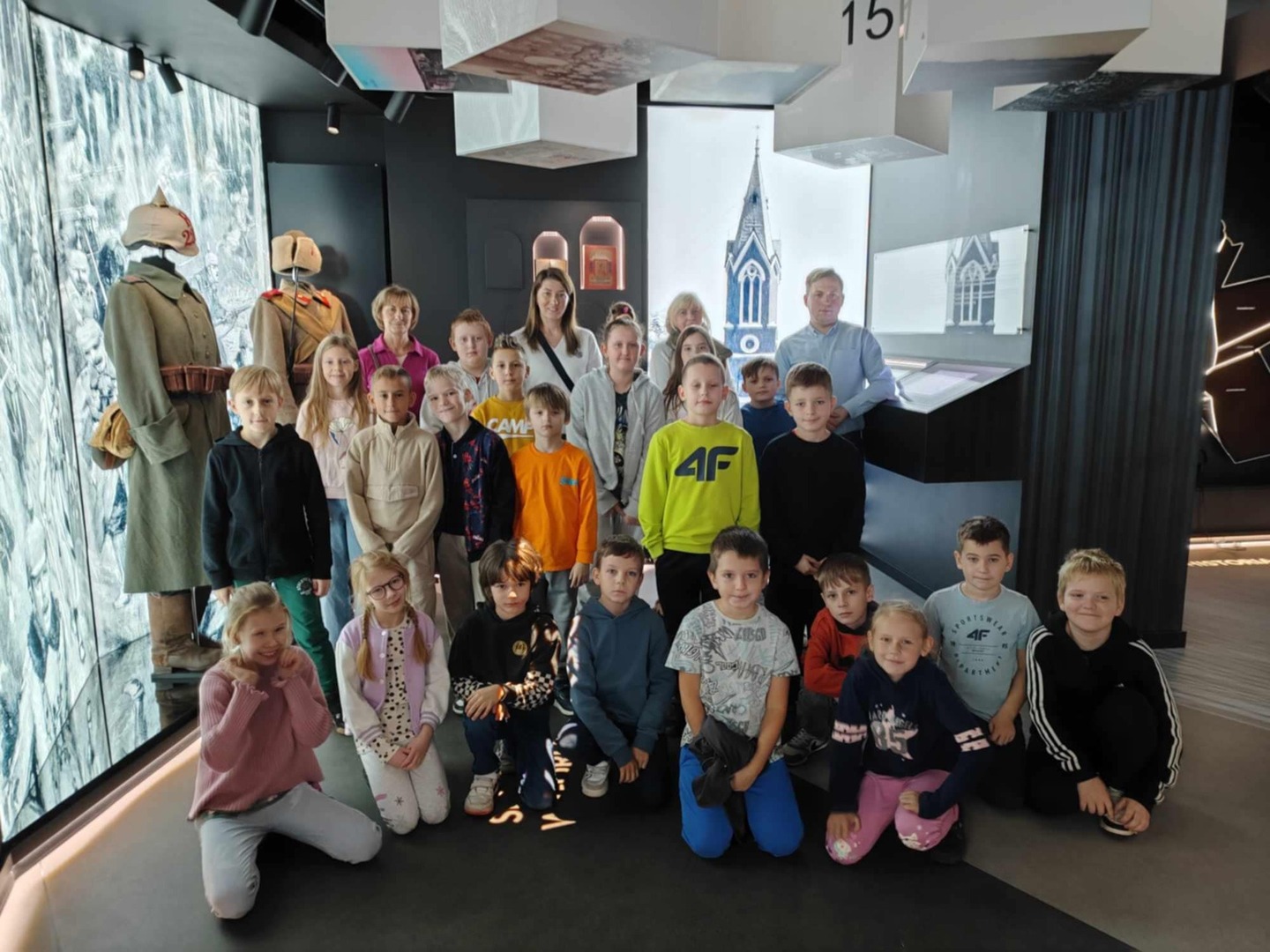 25 października 2024 r. uczniowie klasy II i III byli na wycieczce w Muzeum Koluszek. Pierwszym punktem wycieczki był Pomnik Orła Białego – patriotyczne serce Koluszek. To właśnie pod tym pomnikiem koluszkowianie obchodzą święta narodowe: „ 11 Listopada - Narodowe Święto Odzyskania Niepodległości” i „3 Maja - Uchwalenie Konstytucji 3 Maja”. Zwiedzanie Muzeum Koluszek poprowadził pan Adrian Kut. Ciekawym opowiadaniem przeniósł uczniów w czasy, kiedy żyli ich pradziadkowie. Uczniowie poznali odległą historię miasta Koluszki, wydarzenia które miały miejsce na terenie miasta i pobliskich okolic, instytucje. Zobaczyli eksponaty i pamiątki. Przewodnik muzeum przybliżył też dzieciom historię przebiegu przez Koluszki trasy kolejowej Warszawa- Wiedeń i powstania dworca klejowego - ważnego węzła przesiadkowego. Na koniec wizyty każdy uczeń otrzymał informator „Odkrywcy historii lokalnej”. Po zwiedzaniu Muzeum Koluszek uczniowie odbyli spacer po parku miejskim. Park przywitał nas jesienną szatą. Po krótkim relaksie w parku wróciliśmy do szkoły. To był udany wyjazd! Polecamy i zachęcamy! Dziękujemy p. A. Kutowi i obsłudze muzeum za miłe przyjęcie.