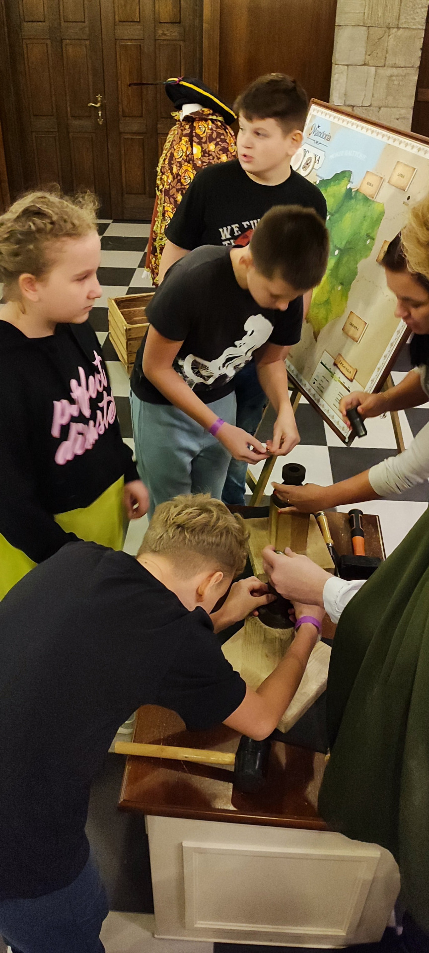 Dnia 8 listopada klasy V, VI i VII odwiedziły park rozrywki "Mandoria" w Rzgowie. W tym dniu oprócz zabaw nie zabrakło również odrobiny edukacji w praktyce... W czasie warsztatów uczniowie zostali zapoznani z ewolucją handlu i środków płatniczych, wcielili się w postacie z 1521 roku oraz samodzielnie wybijali własne monety. Wszystko to pod czujnym okiem animatora warsztatów i opiekunów wycieczki.