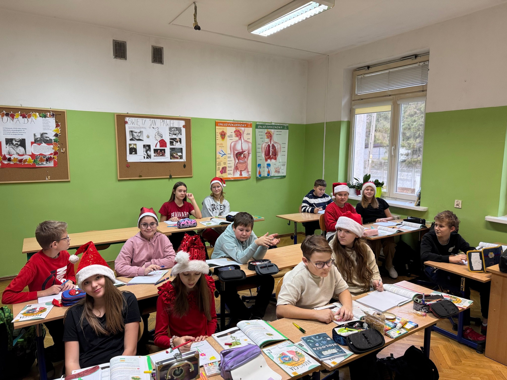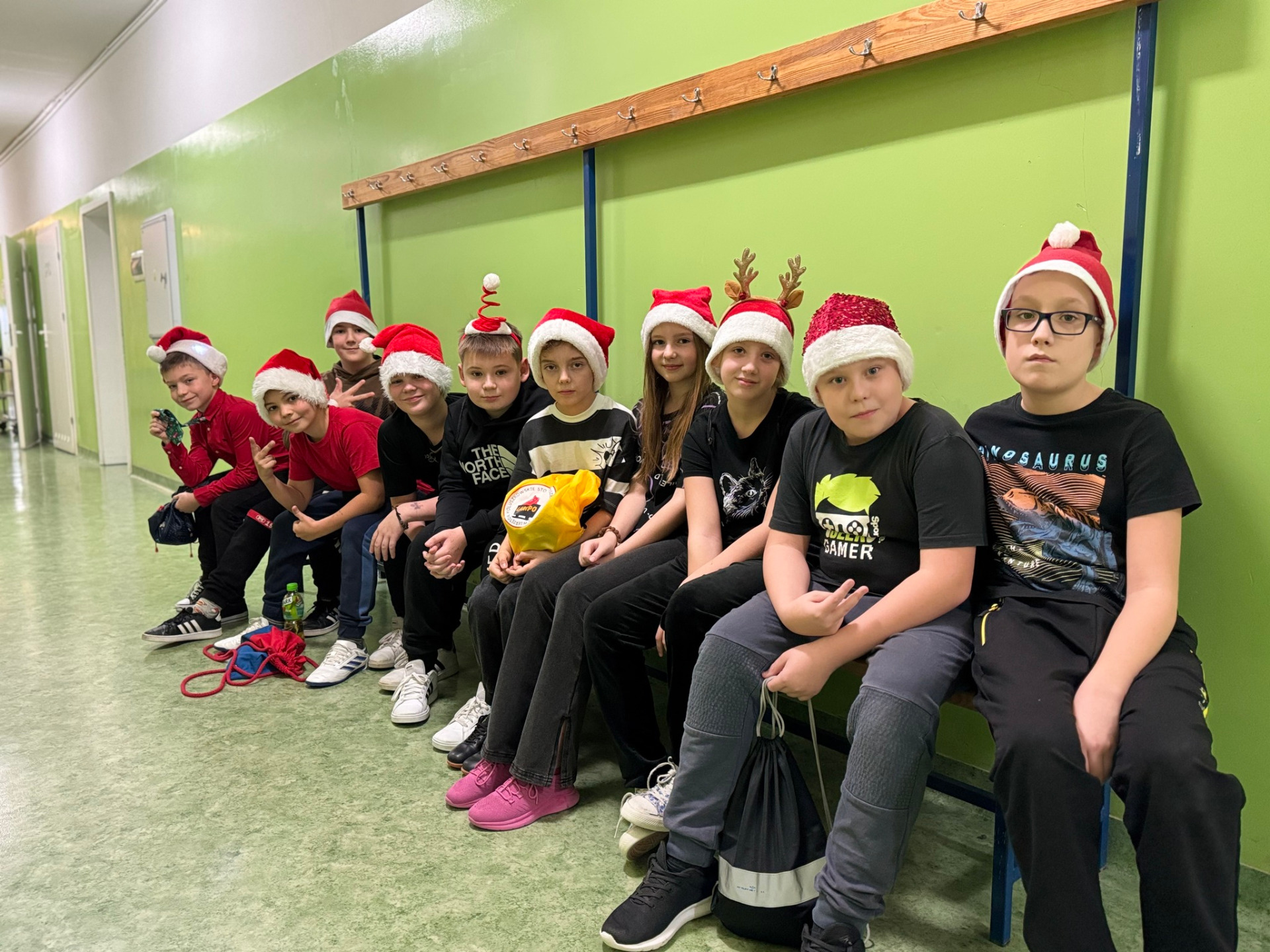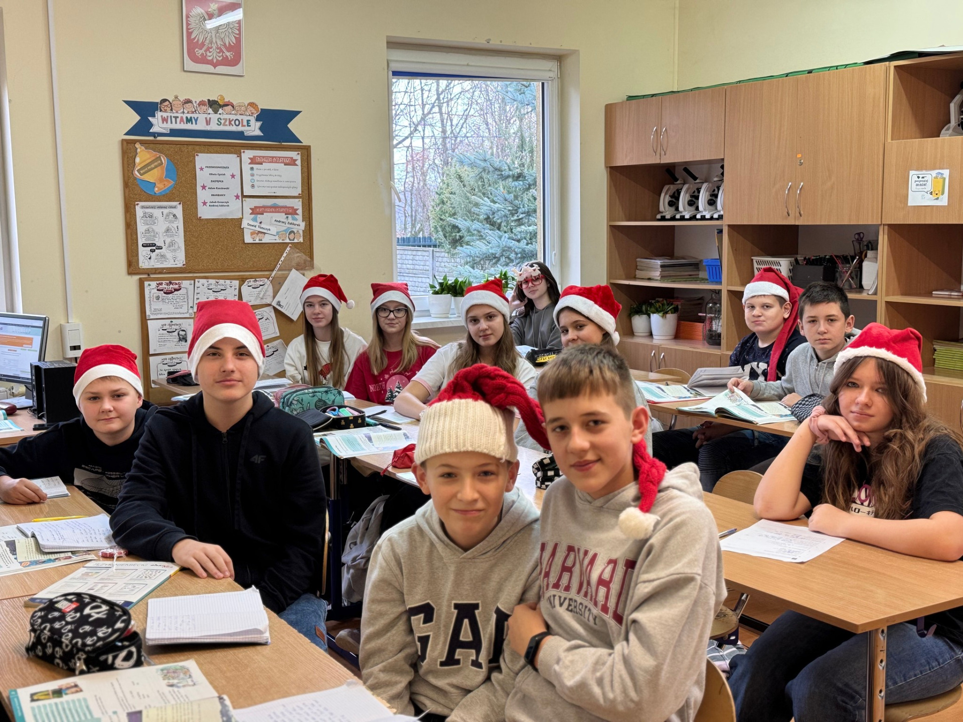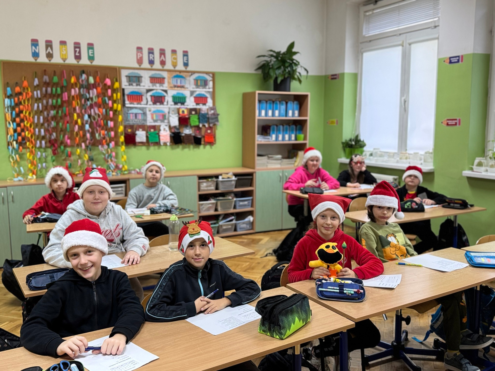 Ho ... Ho... Ho... W naszej szkole dziś Mikołajki. Uczniowie z radością uczestniczyli w tym wyjątkowym dniu zakładając czerwone czapki Mikołaja, które wprowadziły wszystkich w świąteczny nastrój. Był to dzień pełen pozytywnych emocji.