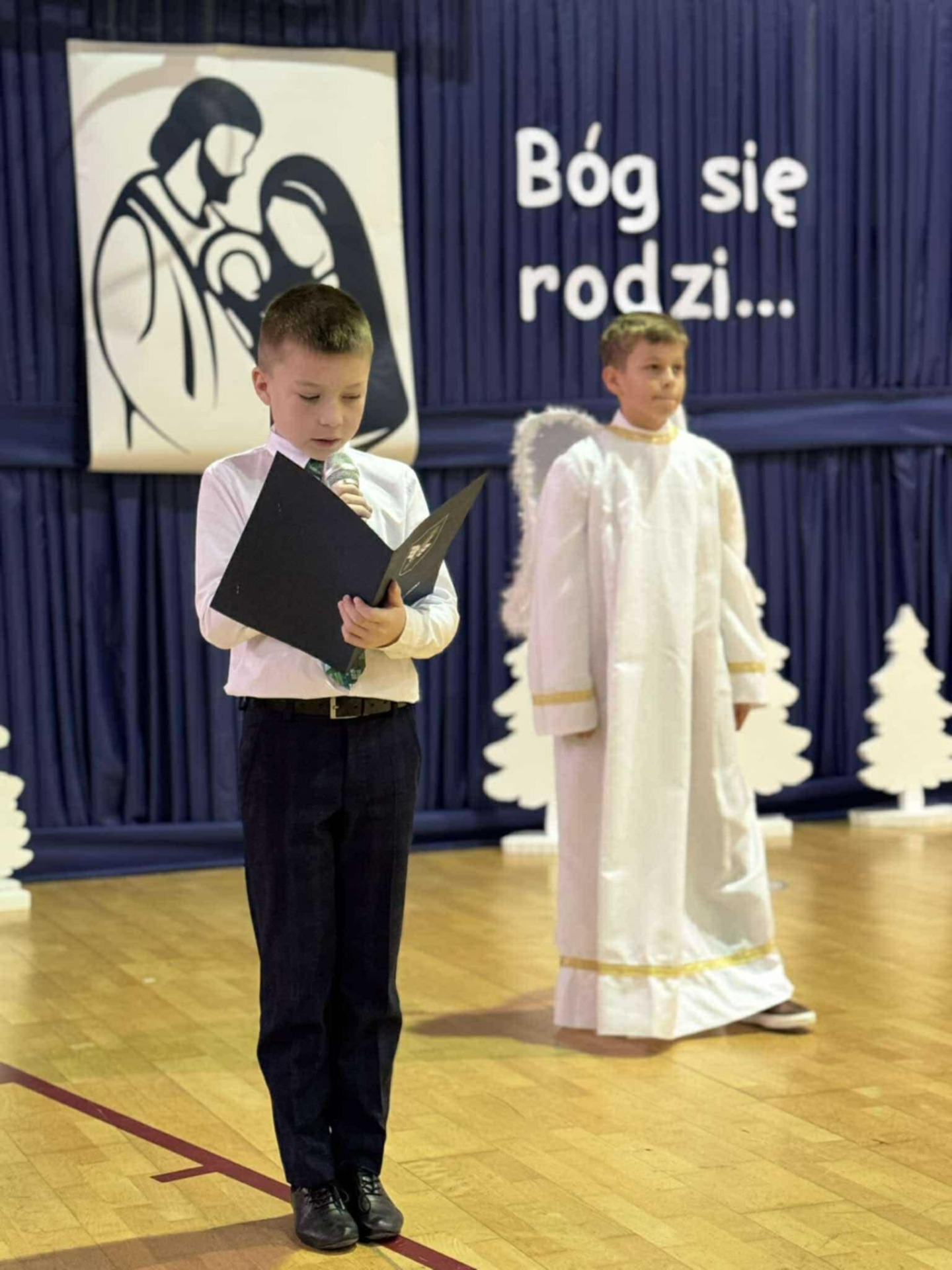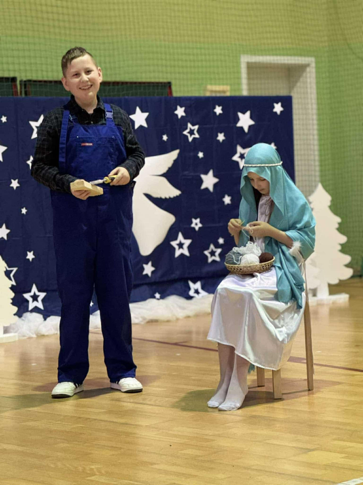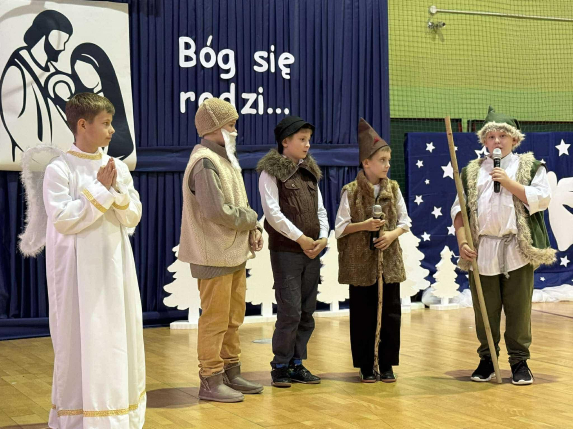 Uczniowie przedstawili jasełka w wersji współczesnej, gdzie Anioł Gabriel otrzymuje zadania z „Góry” i opowiada nam o narodzinach Jezusa. Innowacyjny sposób przekazu treści spowodował, że każdy młody człowiek mógł bardziej zrozumieć cud i magię świąt. Całość dopełniały odśpiewane kolędy i pastorałki.