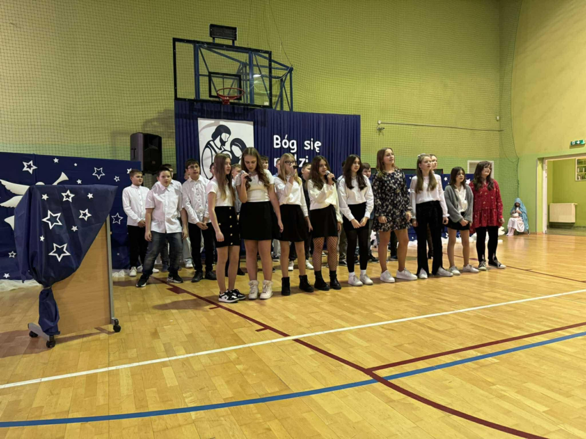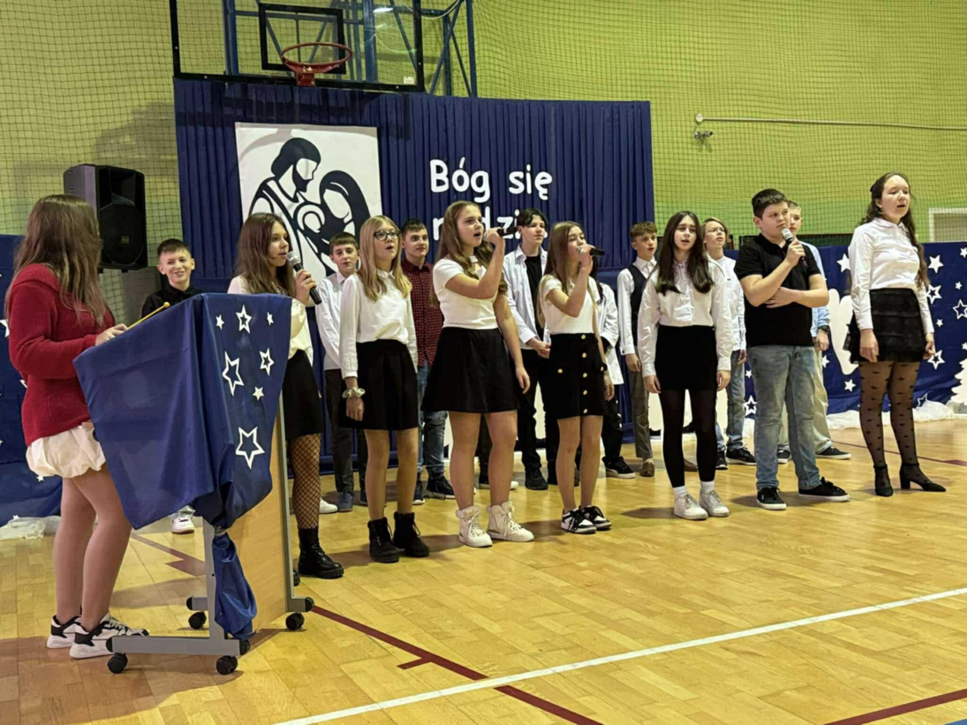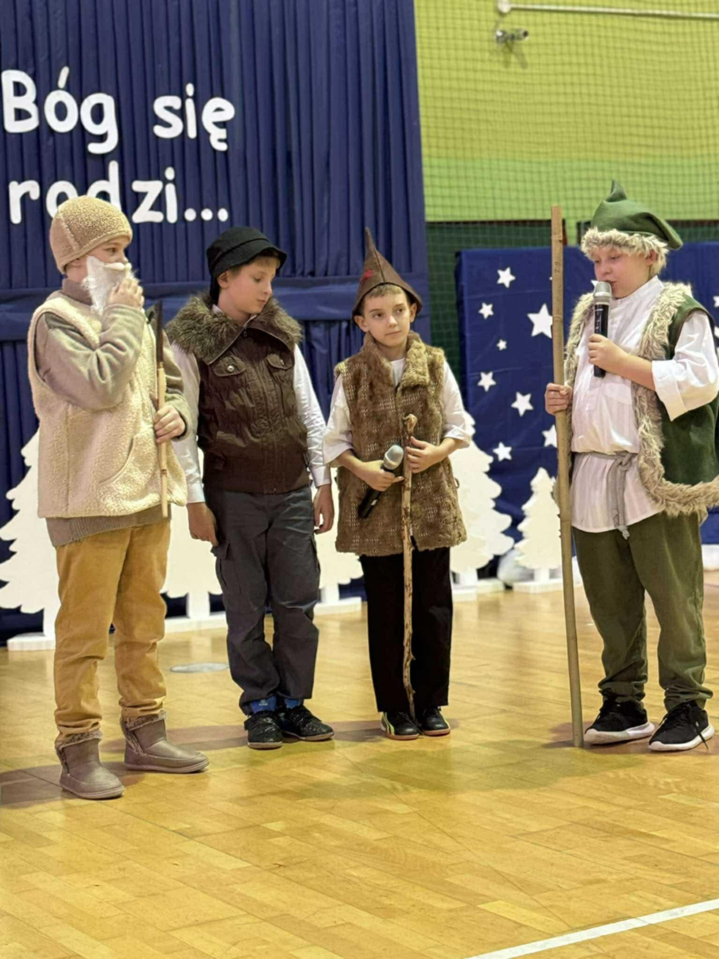 Uczniowie przedstawili jasełka w wersji współczesnej, gdzie Anioł Gabriel otrzymuje zadania z „Góry” i opowiada nam o narodzinach Jezusa. Innowacyjny sposób przekazu treści spowodował, że każdy młody człowiek mógł bardziej zrozumieć cud i magię świąt. Całość dopełniały odśpiewane kolędy i pastorałki.