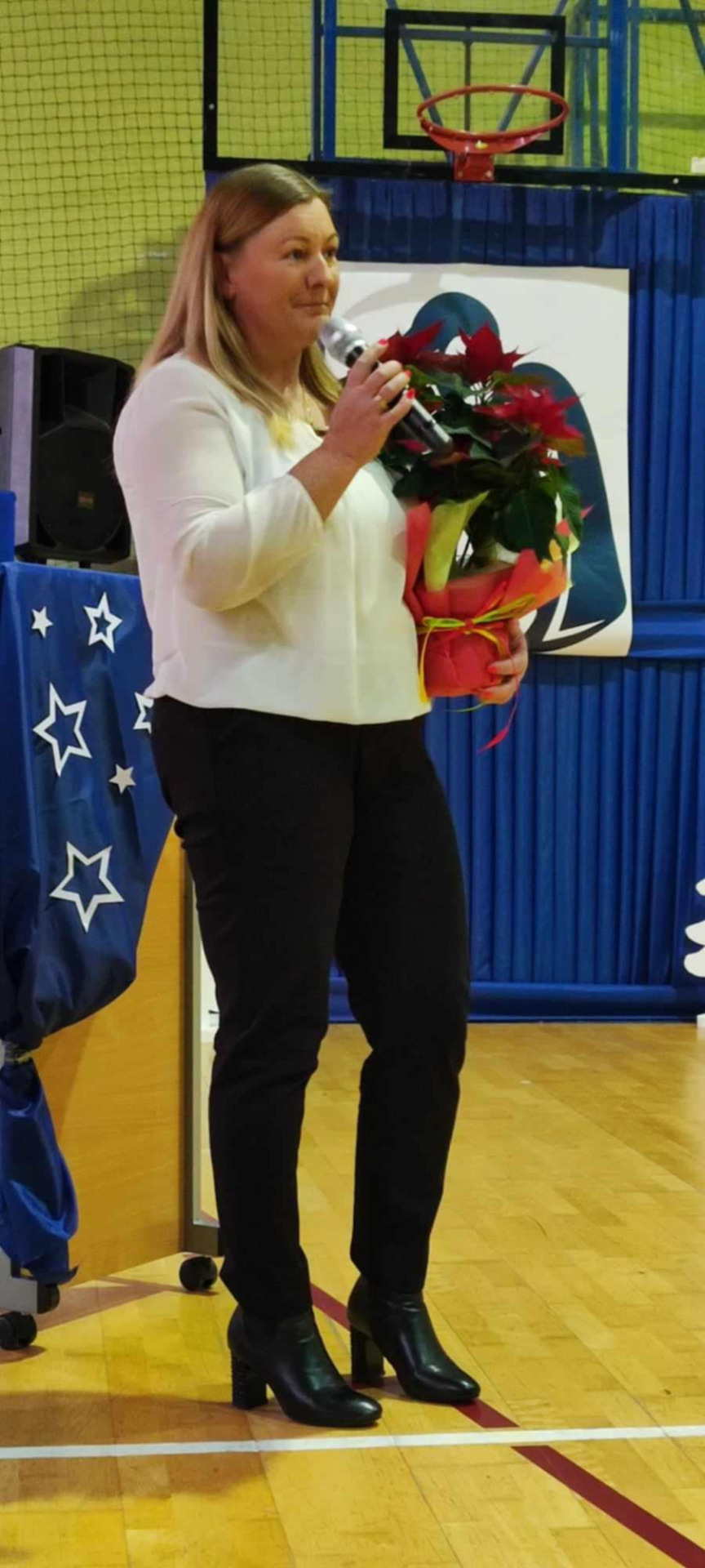 Po przedstawieniu Pani Dyrektor Joanna Jeżyna złożyła wszystkim życzenia, do których dołączyła się przewodnicząca Rady Rodziców p. Iwona Matusiak.
