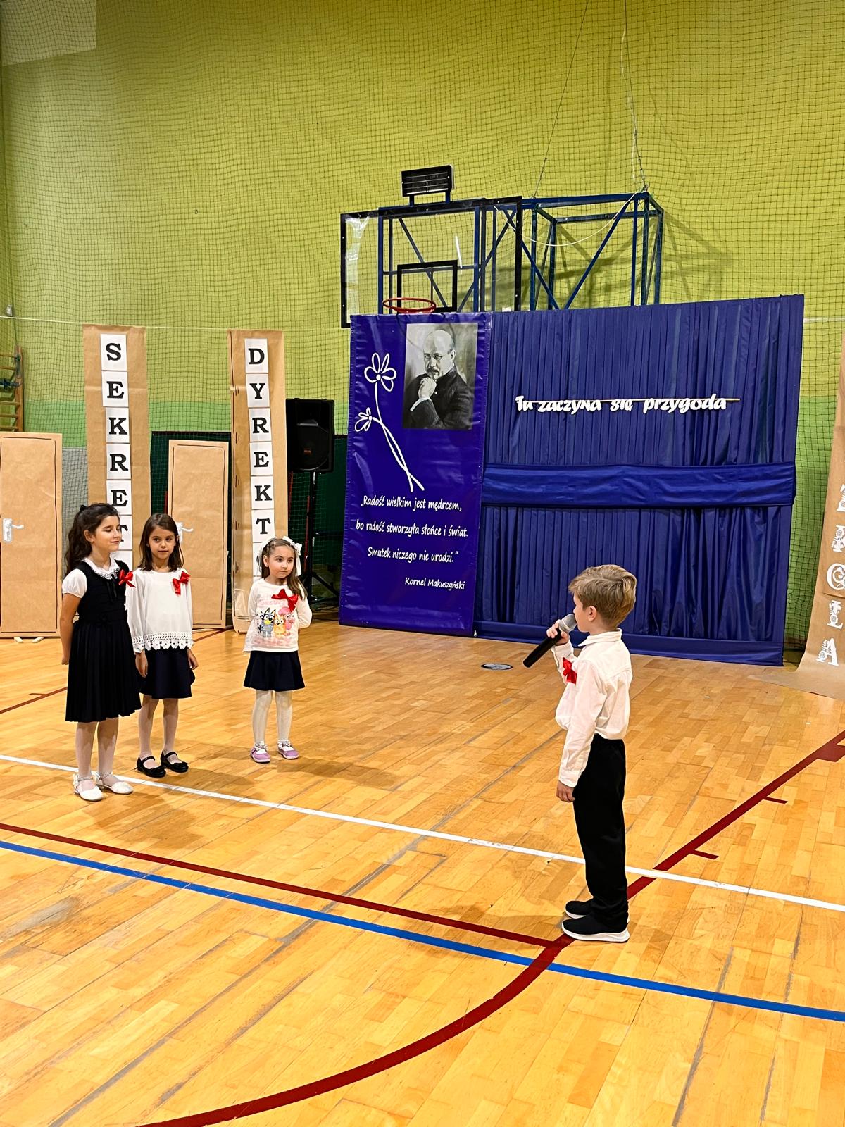 Uroczystość rozpoczęła się od inscenizacji przygotowanej przez uczniów klas starszych, którzy wprowadzili pierwszaków w świat szkolny. Następnie dzieci z klasy pierwszej zaprezentowały własny program artystyczny, po czym złożyły uroczyste ślubowanie i zostały pasowane na uczniów.