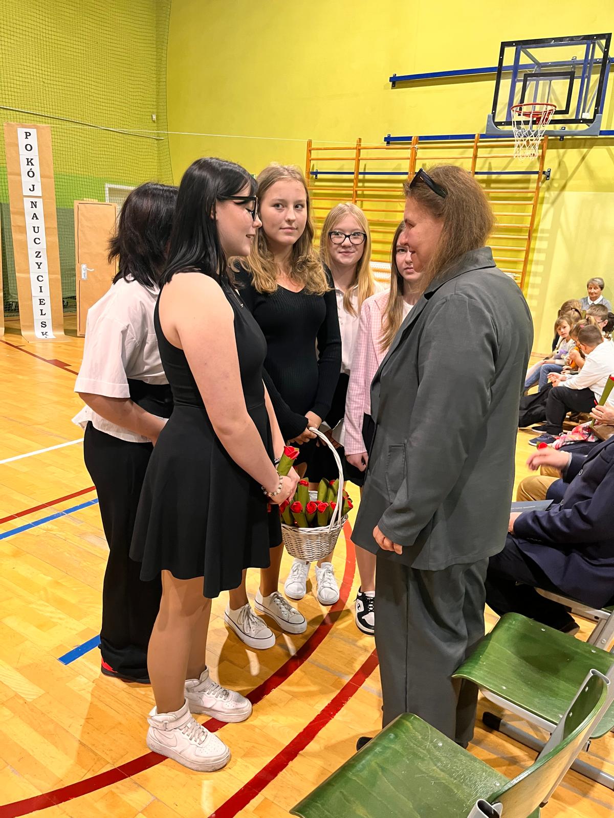 Z okazji Dnia Edukacji Narodowej pani dyrektor Joanna Jeżyna złożyła nauczycielom i pracownikom szkoły serdeczne życzenia oraz podziękowała za ich codzienną pracę, zaangażowanie i troskę o wszechstronny rozwój uczniów.