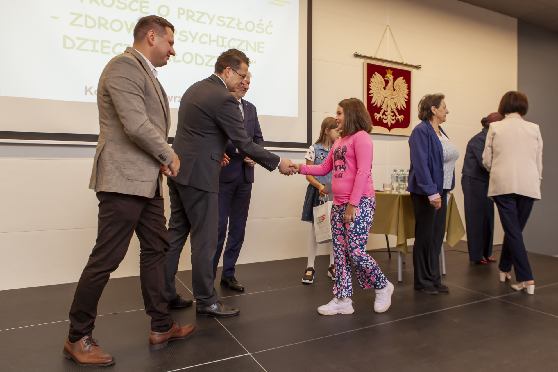 Podczas konferencji wręczono nagrody laureatom powiatowego konkursu plastycznego „Przepis na dobre samopoczucie”, który miał na celu zachęcenie dzieci i młodzieży do rozmów o dobrostanie, sposobach spędzania wolnego czasu i możliwościach uzyskania pomocy w trudniejszych chwilach.