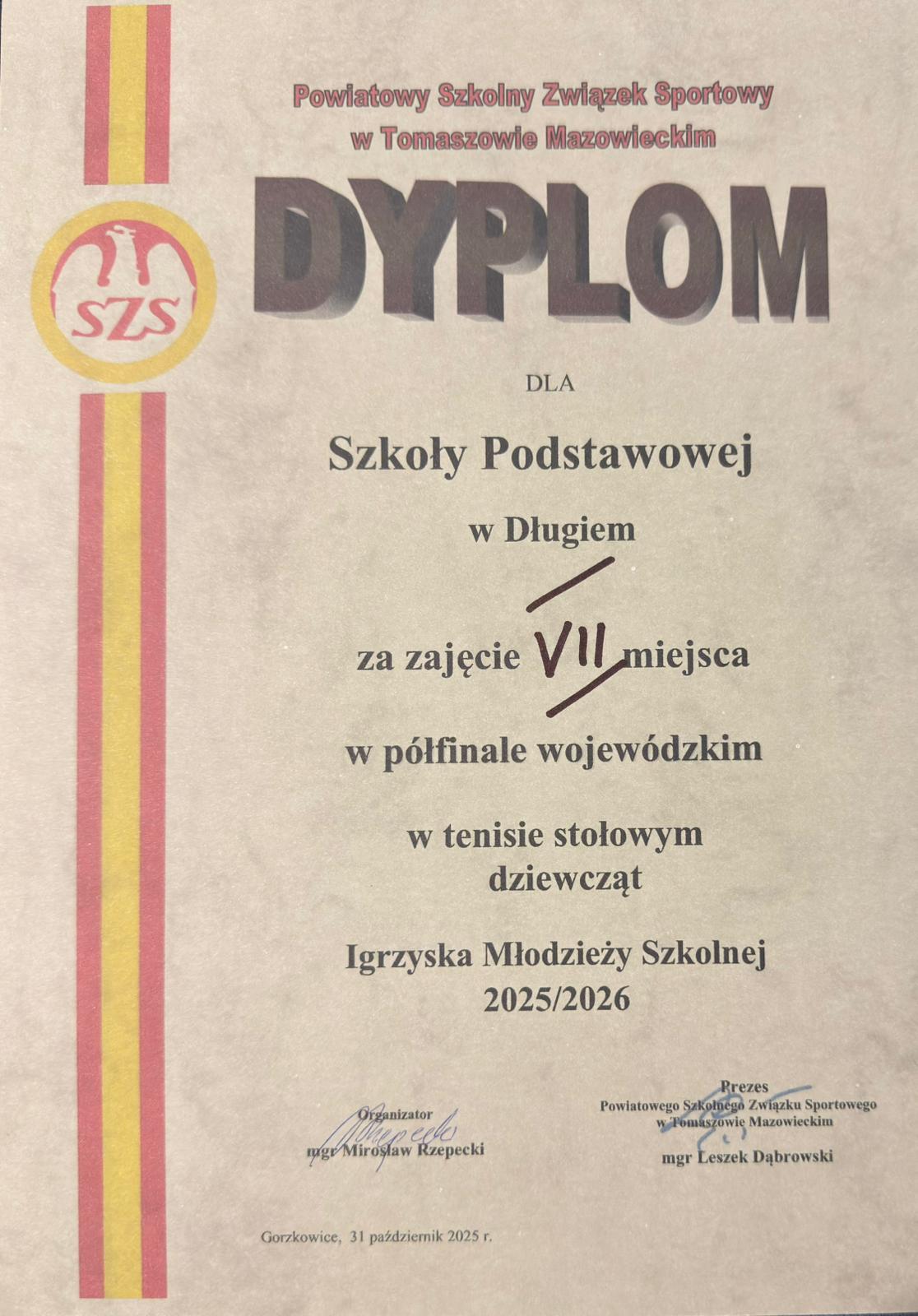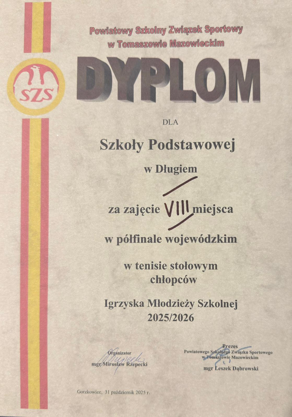Dziś w Gorzkowicach odbyły się półfinałowe zawody wojewódzkie w tenisie stołowym w ramach Igrzysk Młodzieży Szkolnej. Naszą szkołę reprezentowały zespół dziewcząt w składzie: Julia Matusiak, Karolina Frączak i Maja Jóźwik oraz zespół chłopców w składzie: Bartłomiej Matusiak, Marcel Rybiński i Fabian Wawrzonowski.
