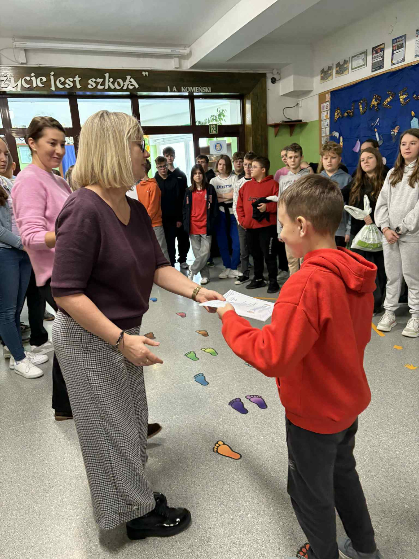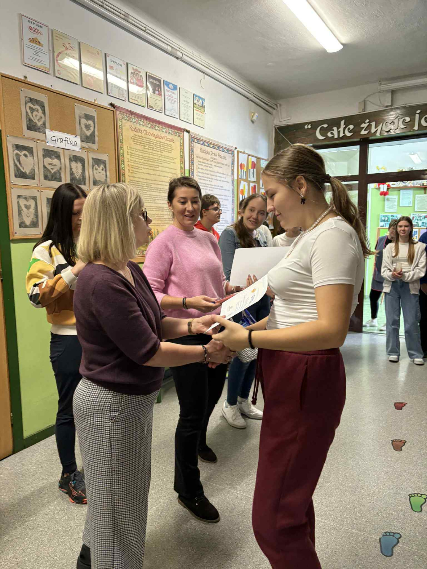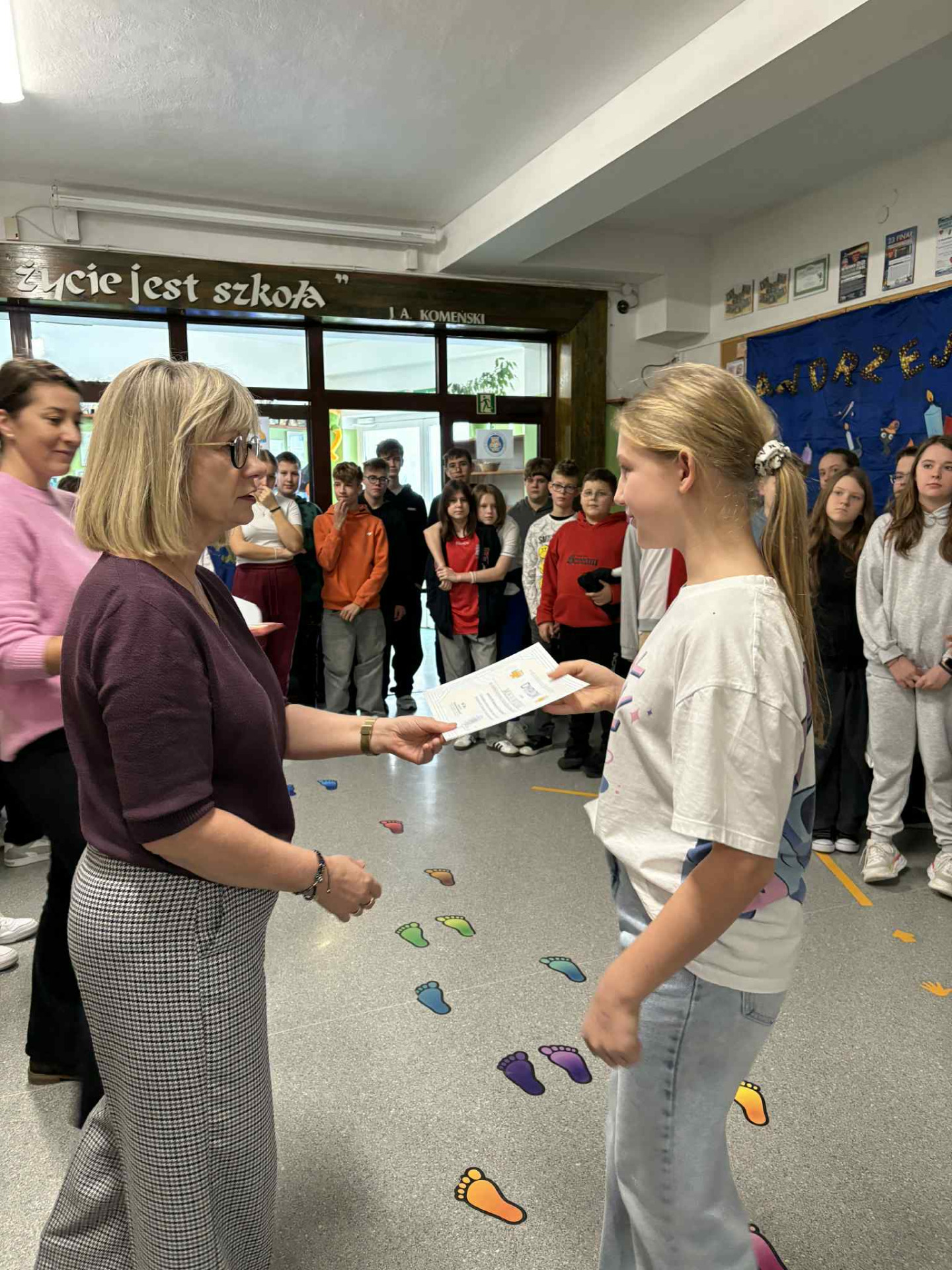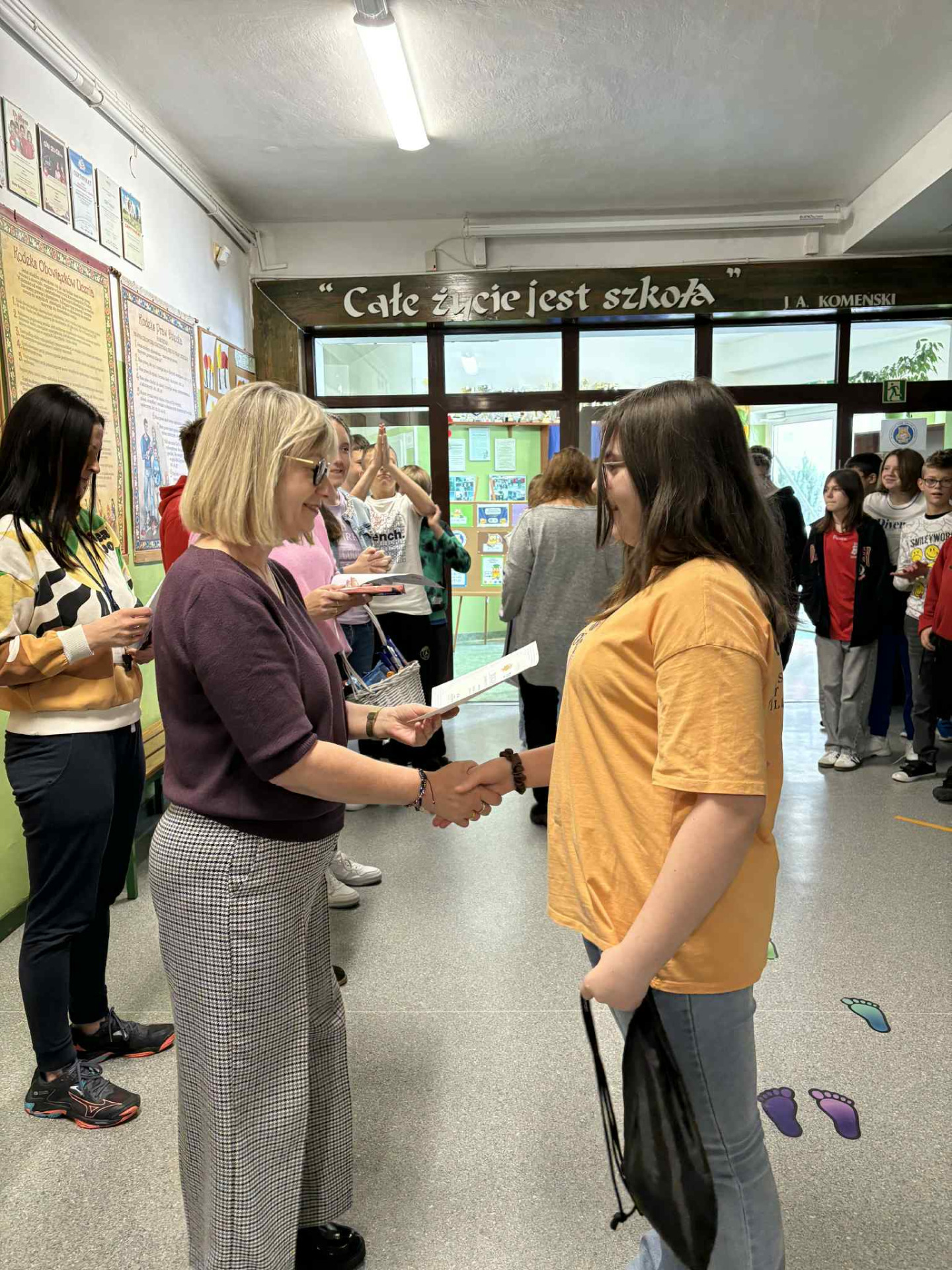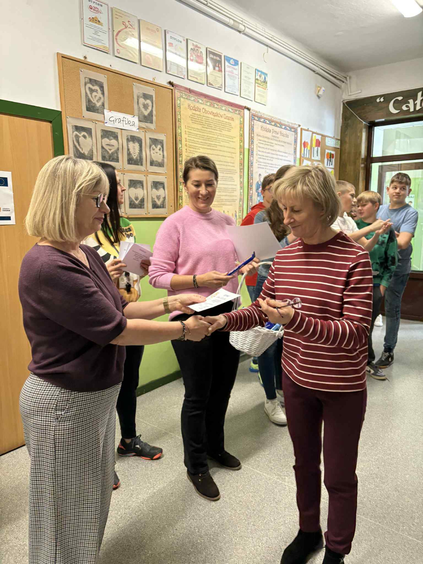 W tym ważnym dniu wzięli udział również pracownicy szkoły, którzy pomyślnie zdali egzamin z tabliczki mnożenia i otrzymali certyfikaty: pani Ewa Klimkiewicz, pani Anna Kłosińska, pani Wioletta Pietrzyk, pani Maria Szymczyk, pani Justyna Waszczykowska oraz pan Tadeusz Jeziorski.
